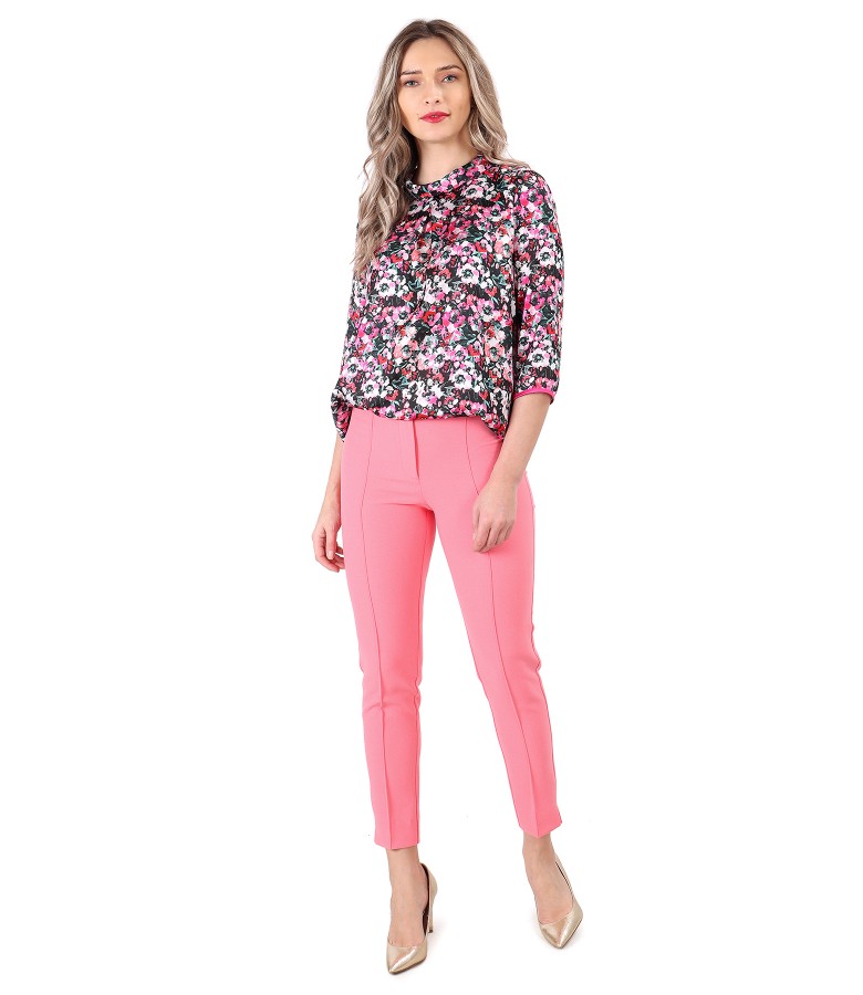 Pantaloni pana cu bluza din saten imprimat (), marimea