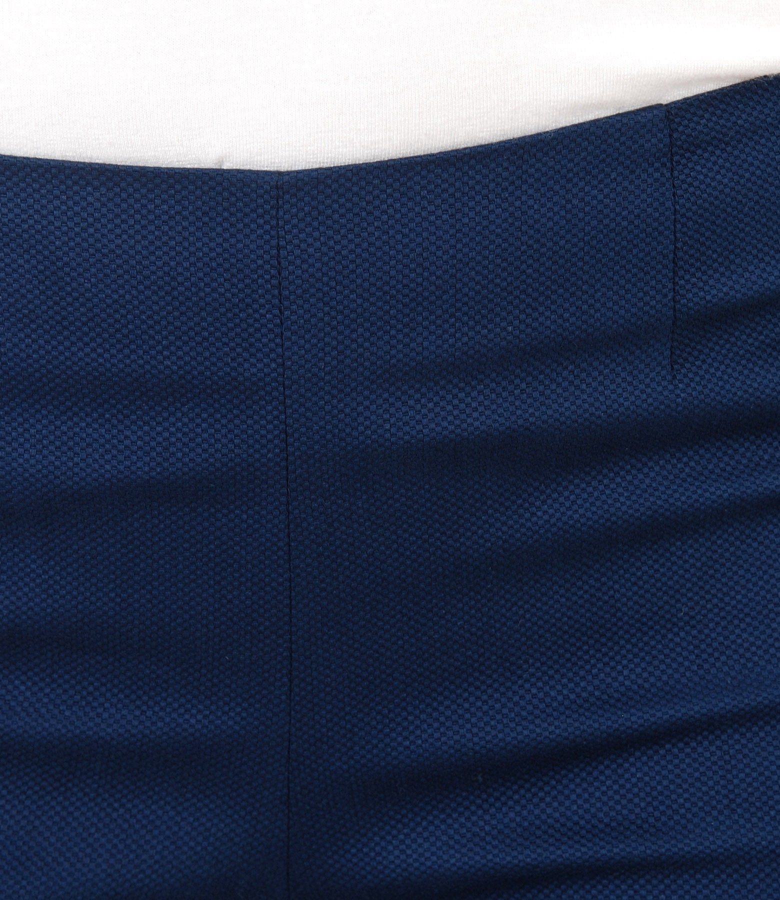 Pantaloni eleganti din bumbac texturat, cu slituri laterale si forma pana. Se inchid cu fermoar ascuns pe lateral stanga.