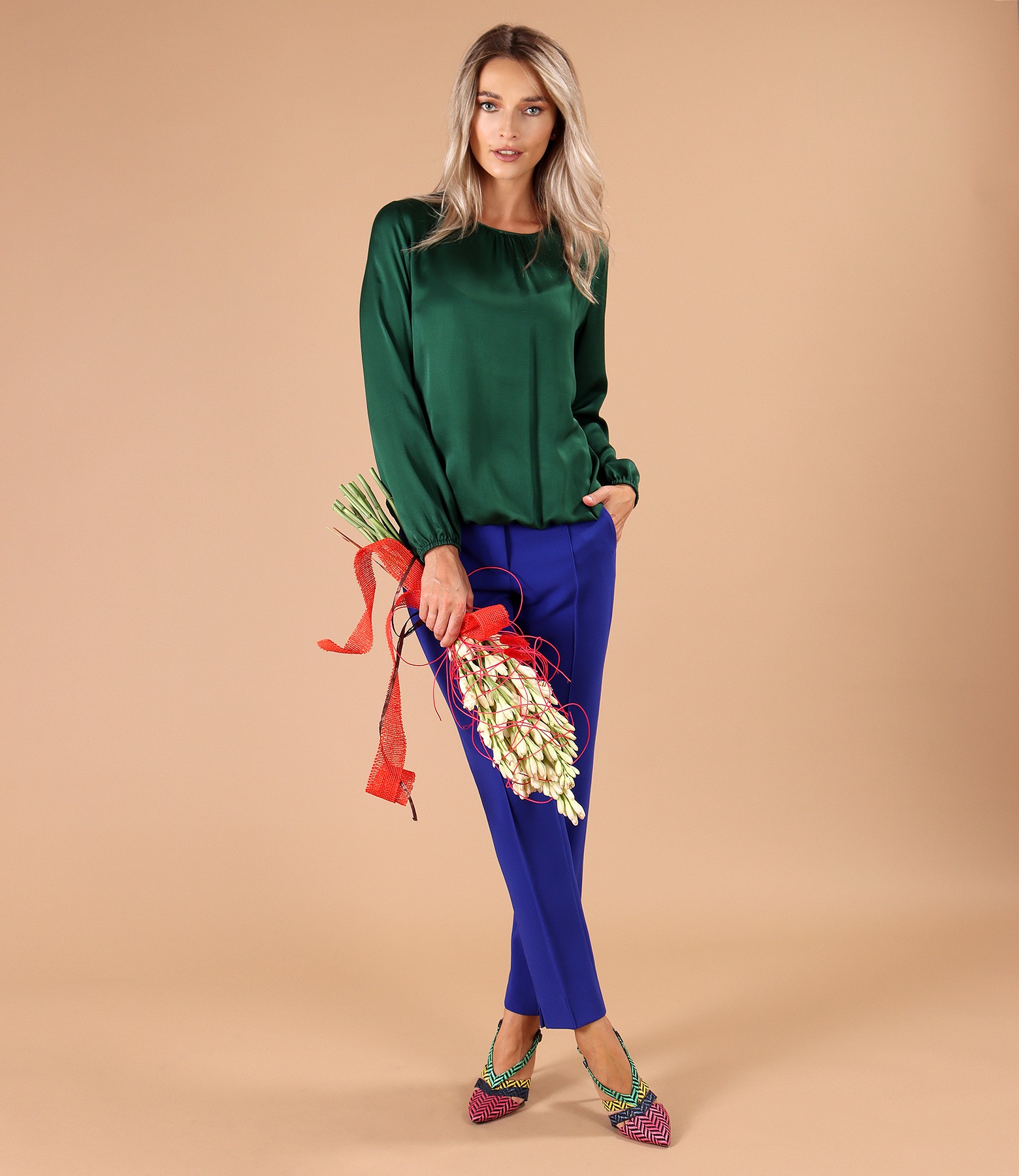 Pantaloni pana din stofa elastica (Albastru royal), marimea