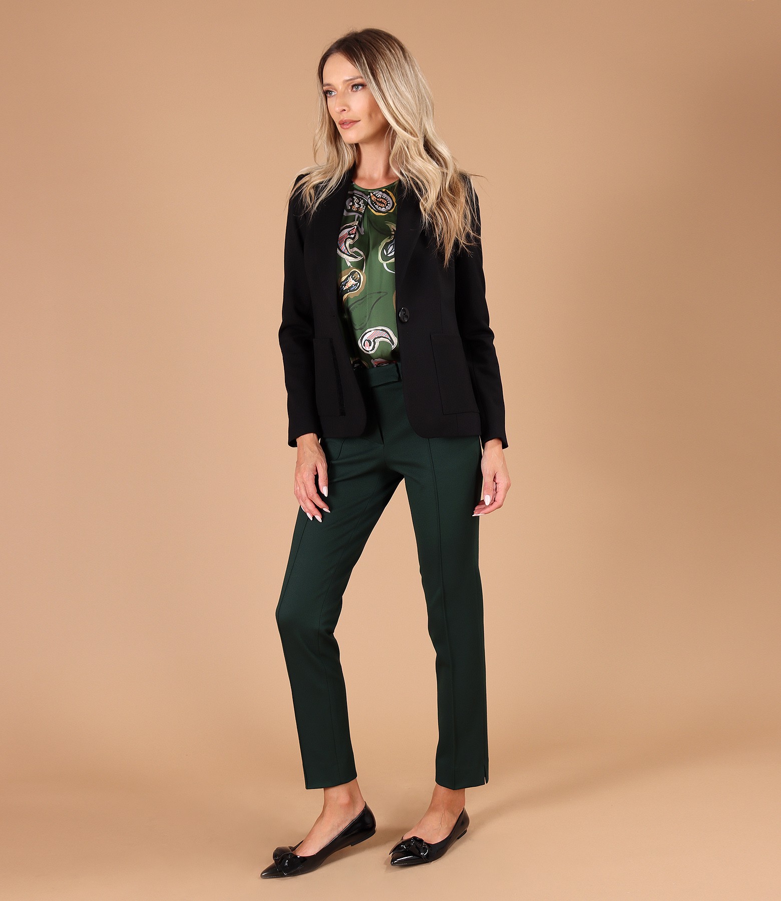 Pantaloni pana din stofa texturata cu viscoza (Verde pin), marimea
