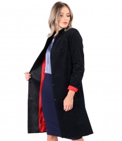 Pardesiu din catifea elastica de bumbac imprimata cu picouri