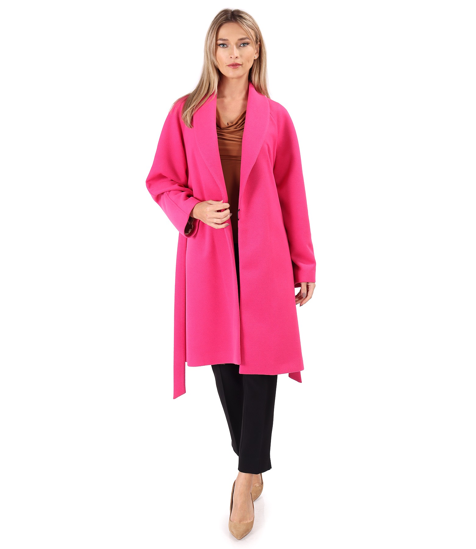 Pardesiu lejer din stofa groasa cu viscoza, captusit, cu buzunare laterale, maneci lungi tip raglan si cu slit pe mijloc spate. Se inchide cu un cordon fixat in lateral cu gaici.