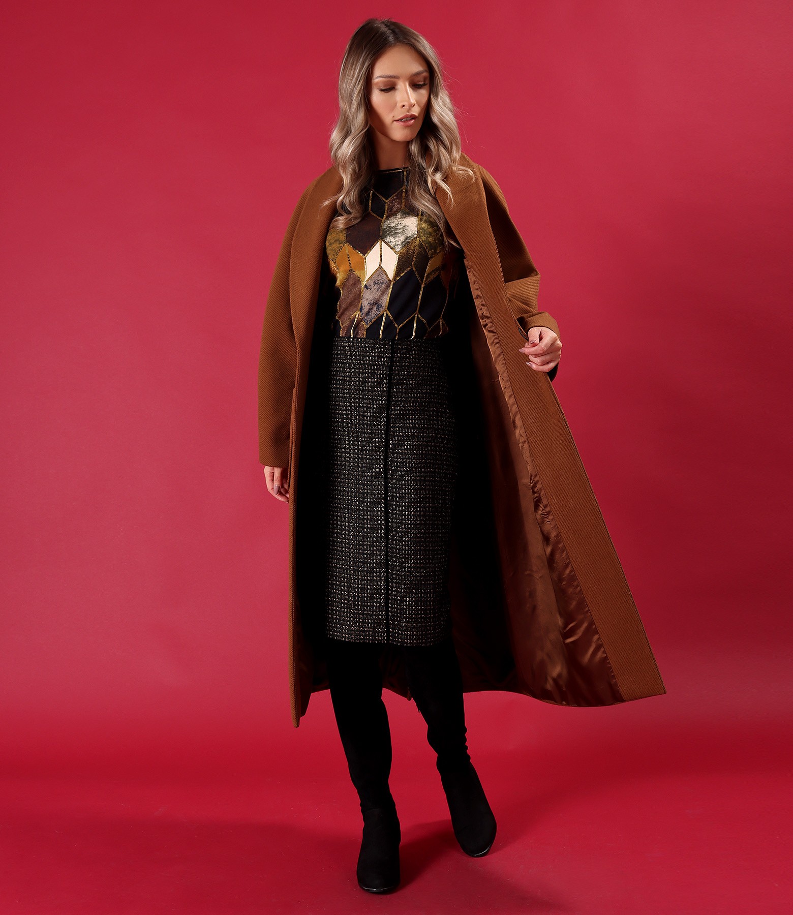 Pardesiu midi lejer din stofa groasa (Maro), marimea