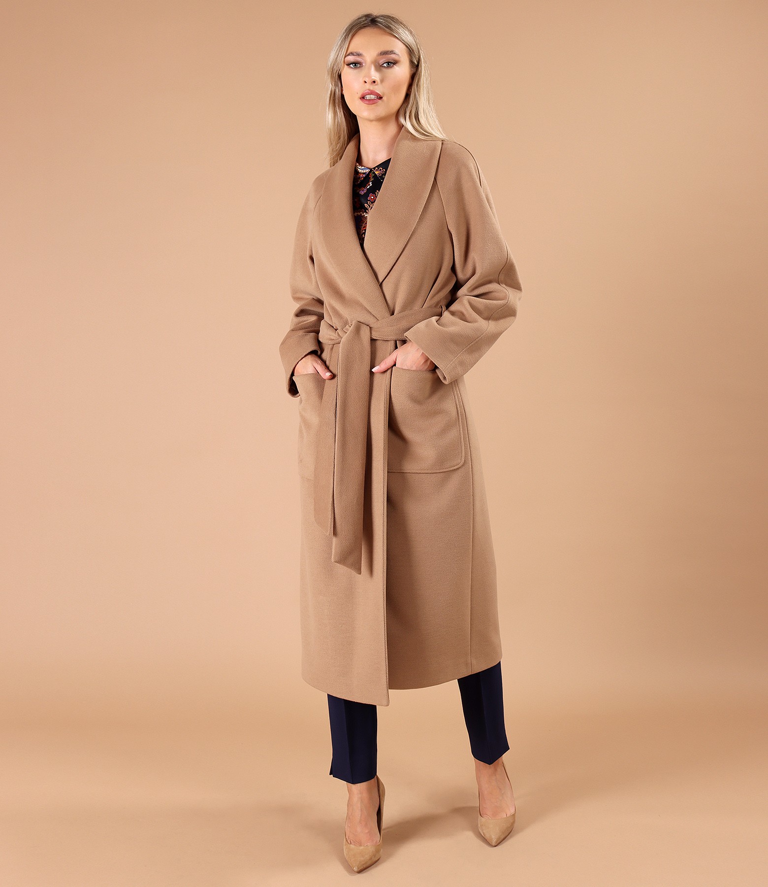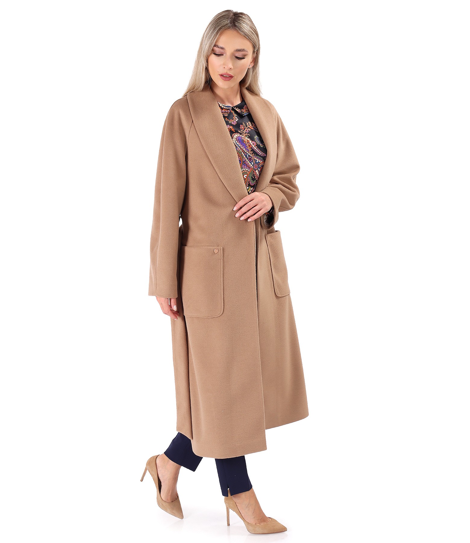 Pardesiu midi lejer din stofa groasa (Maro deschis), marimea