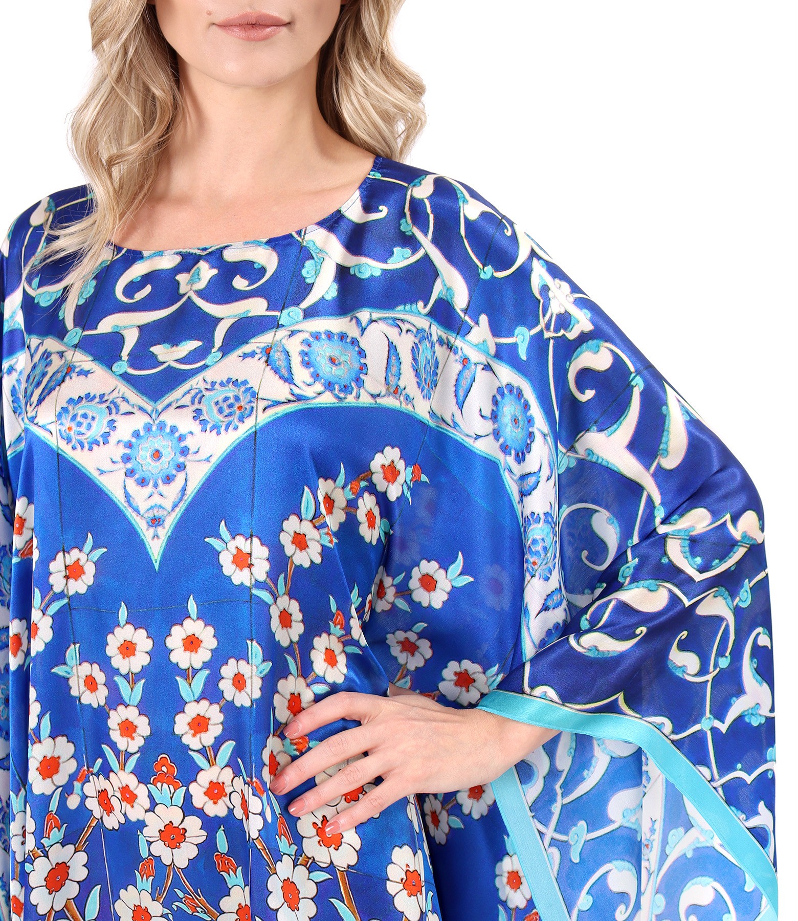Rochie caftan din matase naturala fina cu cordon in talie (Albastru), marimea