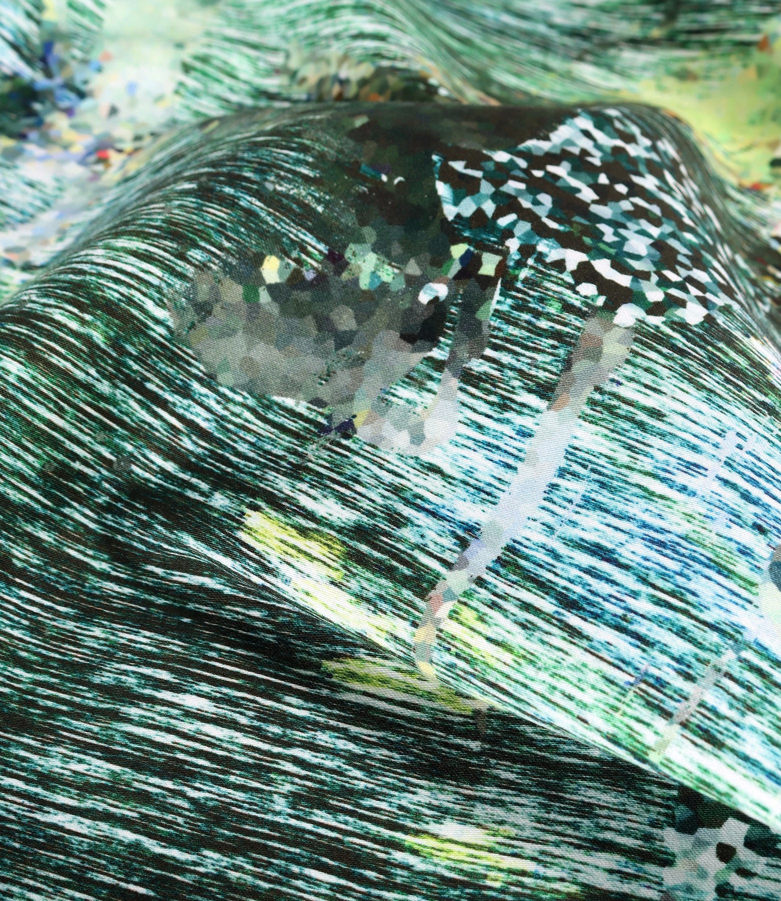Rochie conica din bumbac elastic imprimat digital, necaptusita, cu decolteu rotund, maneci scurte si cu slit petrecut pe mijloc spate. Se inchide cu fermoar ascuns pe mijloc spate.