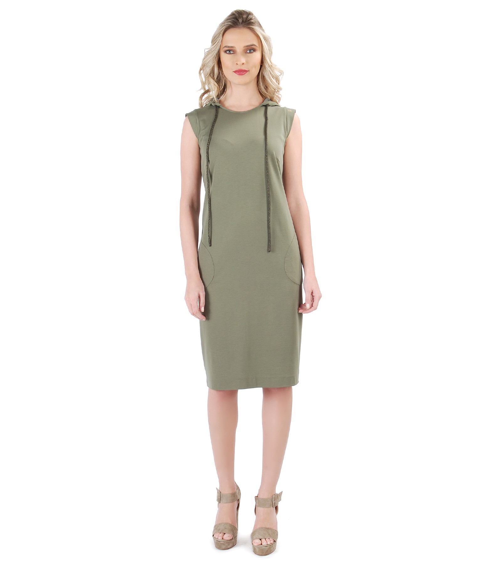Rochie cu gluga din jerse elastic (Kaki), marimea