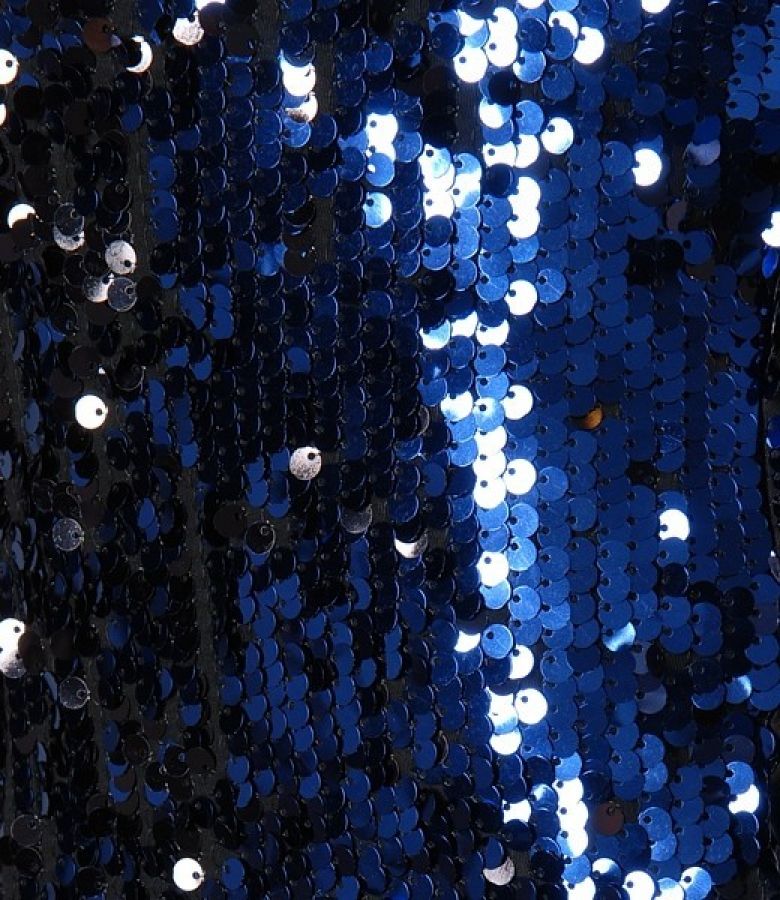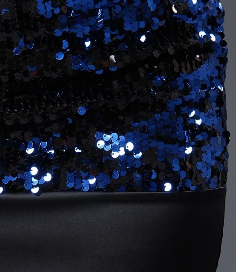 Rochie cu paiete albastre si saten negru
