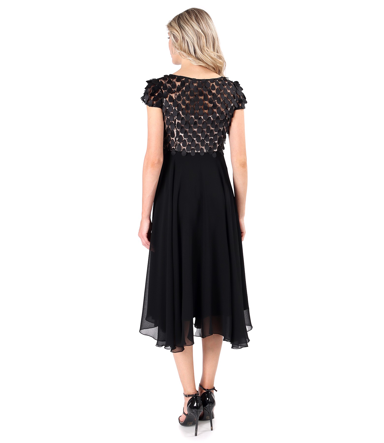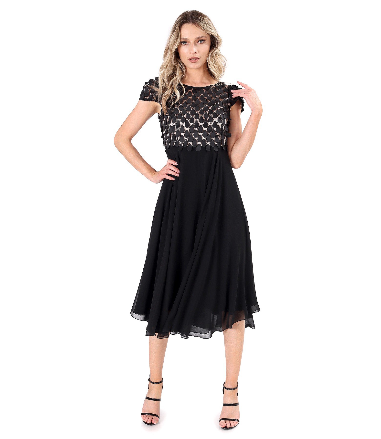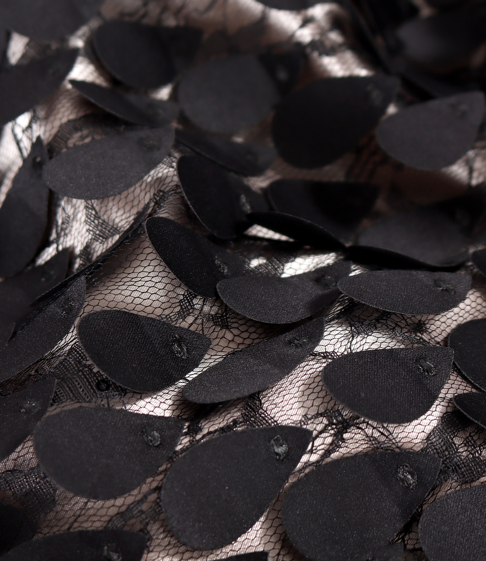 Rochie de cocktail cu corset din dantela cu petale (Negru), marimea