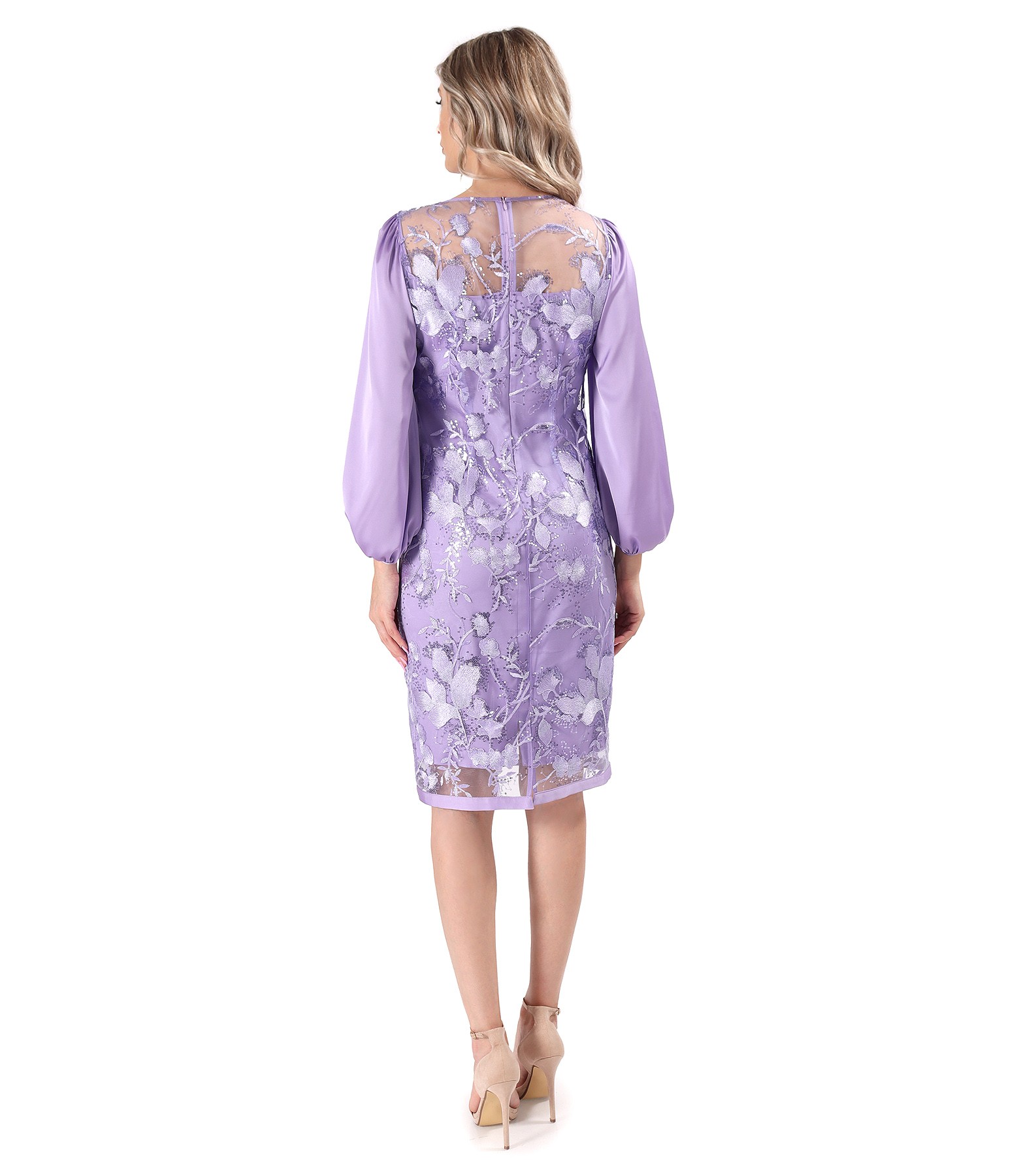 Rochie de cocktail din dantela cu paiete cu motive florale (Lila), marimea