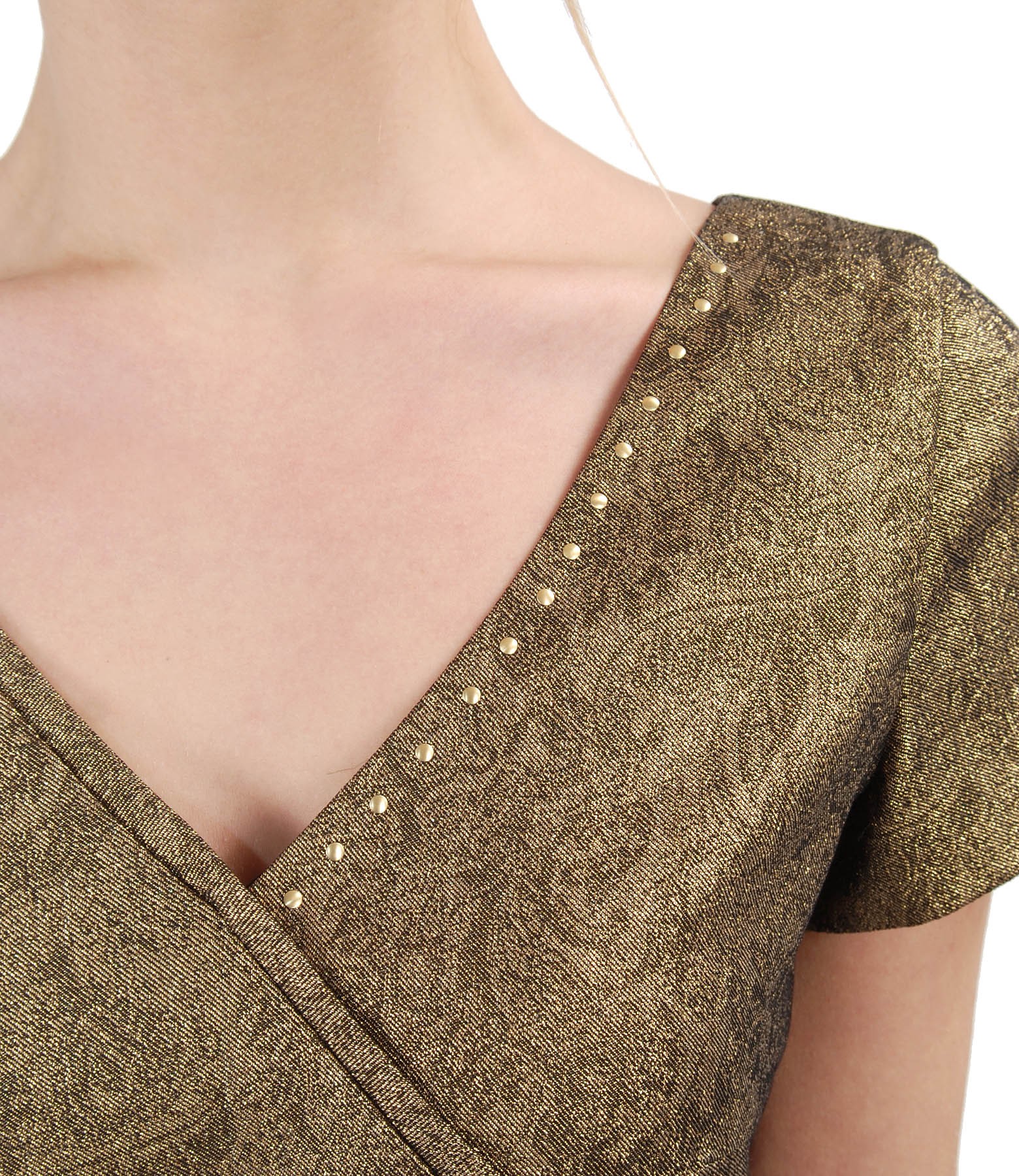 Rochie de ocazie din bumbac elastic metalizat cu aplicatii metalice (Auriu), marimea