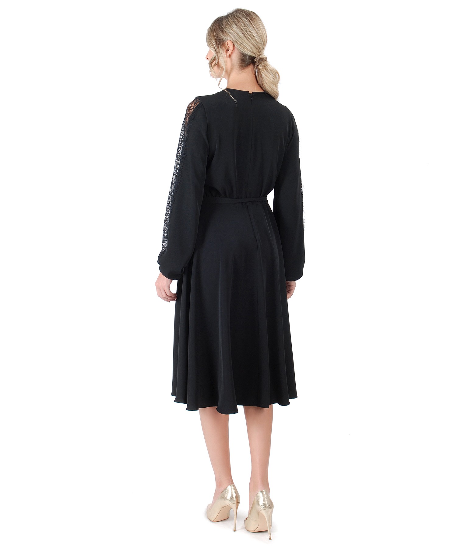 Rochie de seara cu dantela pe maneci (Negru), marimea