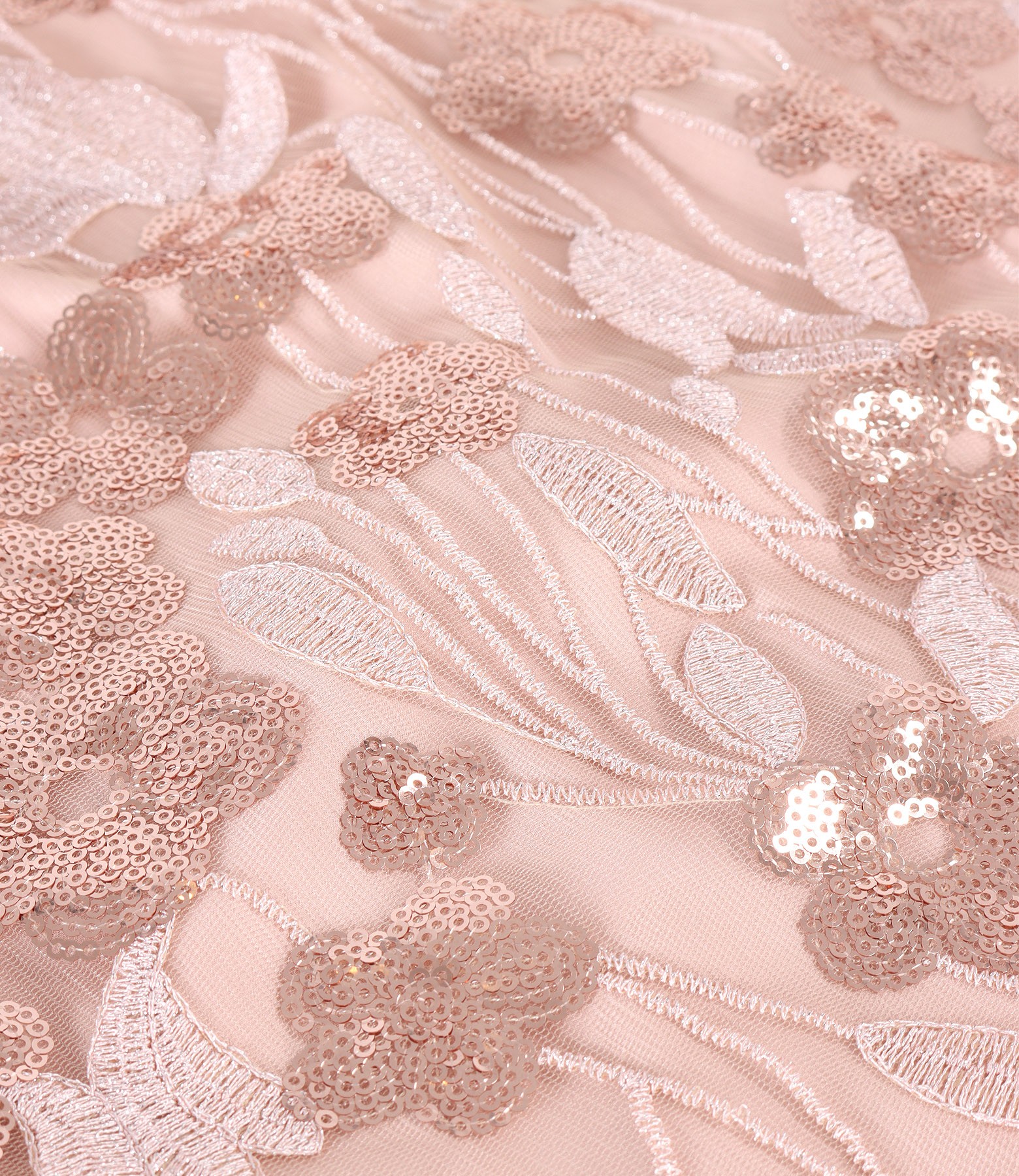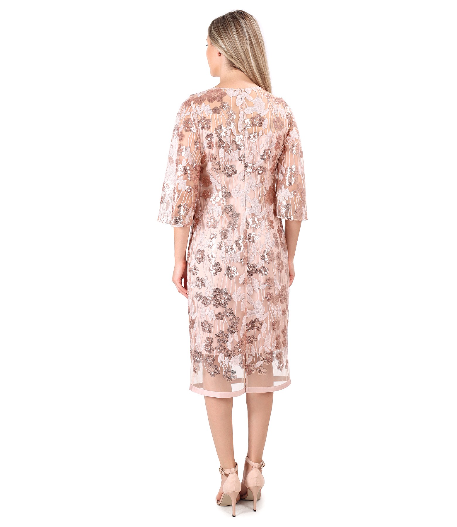 Rochie de seara cu maneci ample din dantela cu paiete (Roz prafuit), marimea
