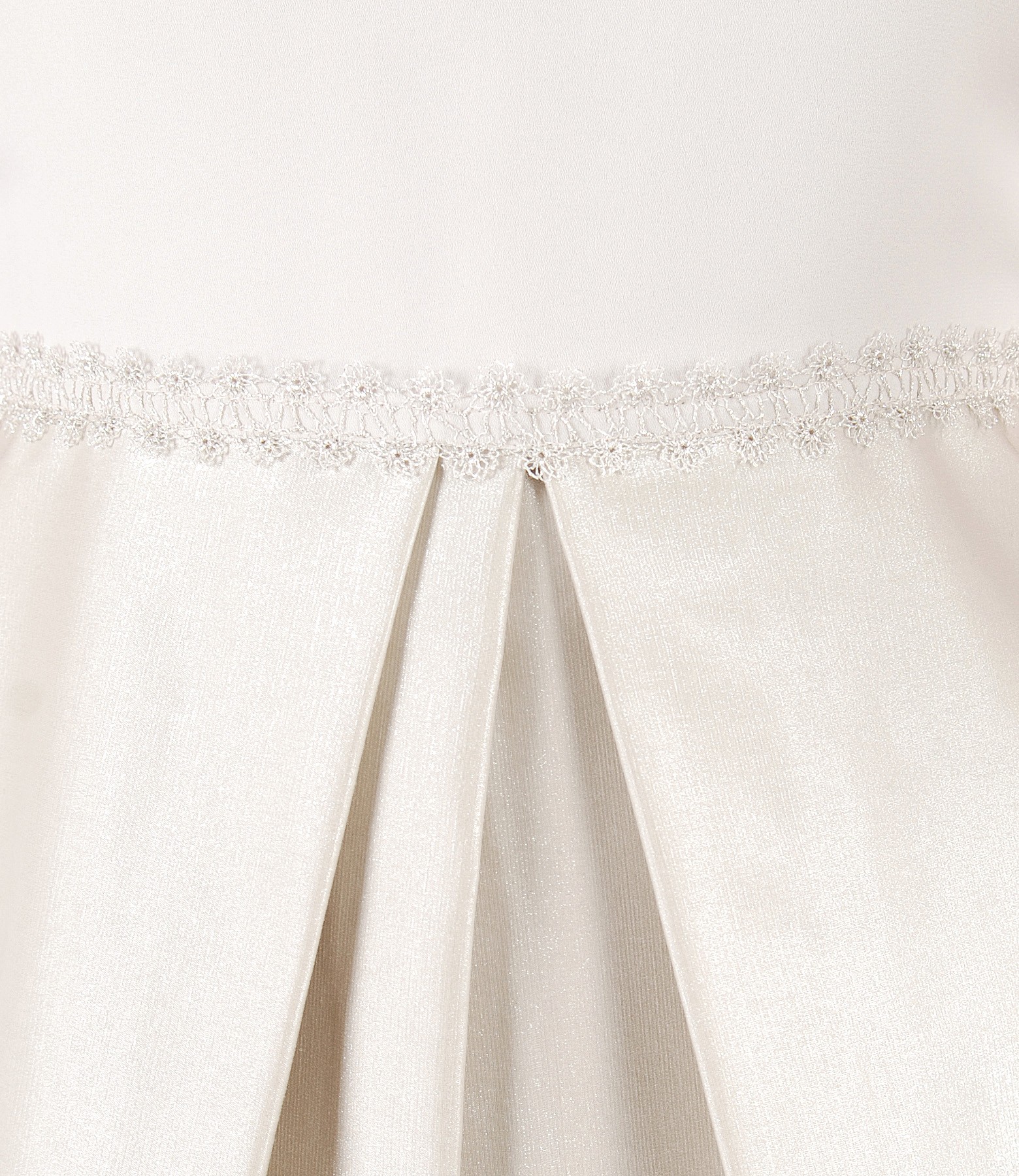 Rochie de seara cu ornament din dantela pe decolteu, captusita, cu fusta evazata cu pliuri si cordon din dantela in talie. Are corsajul din voal dublat si maneci scurte tip aripioara. Se inchide cu fermoar ascuns si nasture pe mijloc spate.