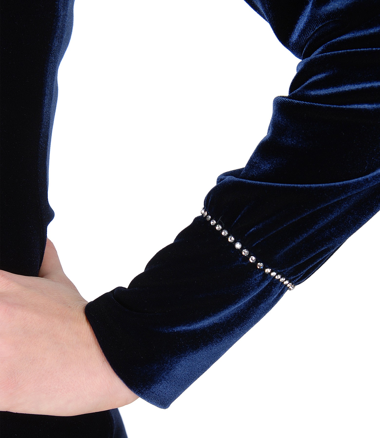 Rochie de seara din catifea cu aplicatie de cristale pe mansete (Bleumarin), marimea