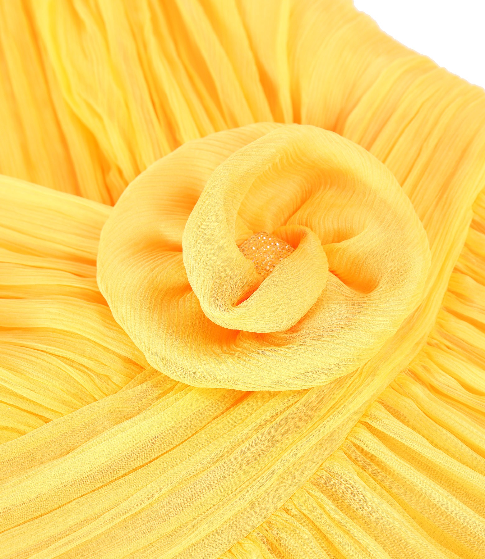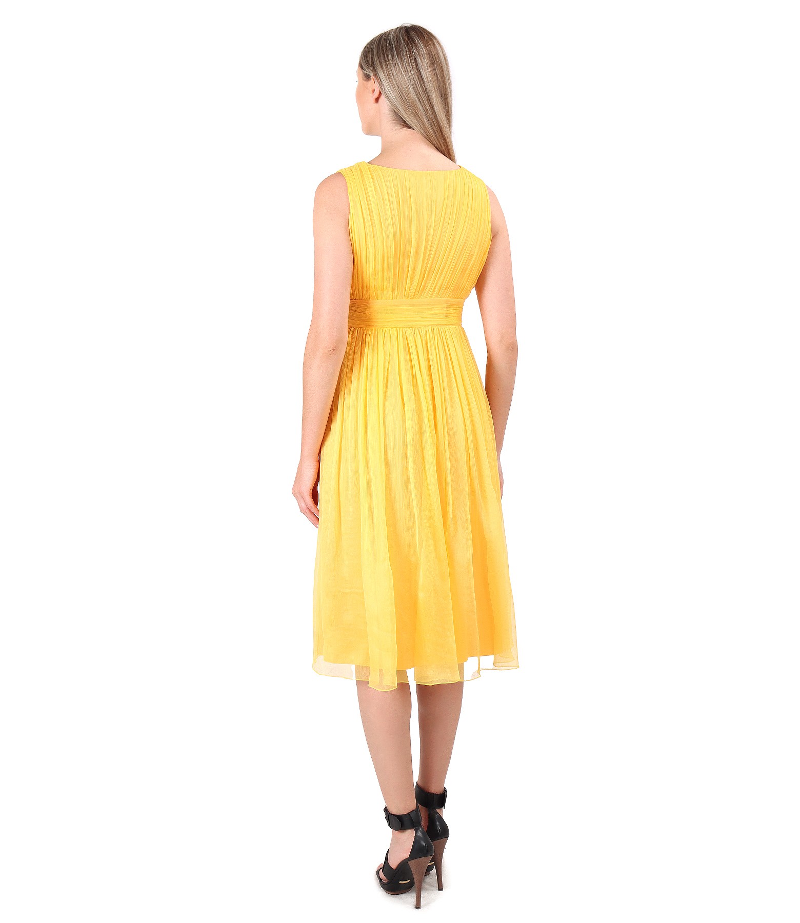 Rochie de seara din voal de matase naturala cu brosa (Galben), marimea