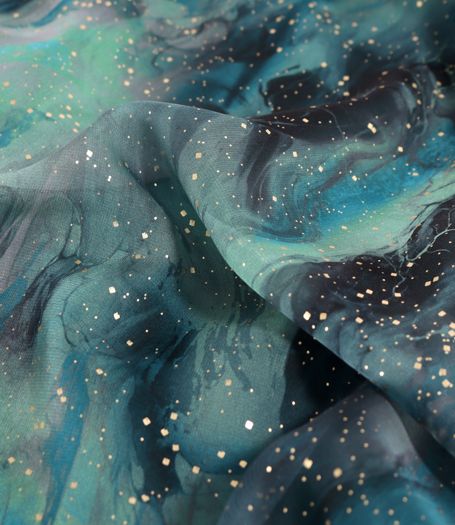 Rochie de seara din voal imprimat si cu motive aurii (Verde pin), marimea