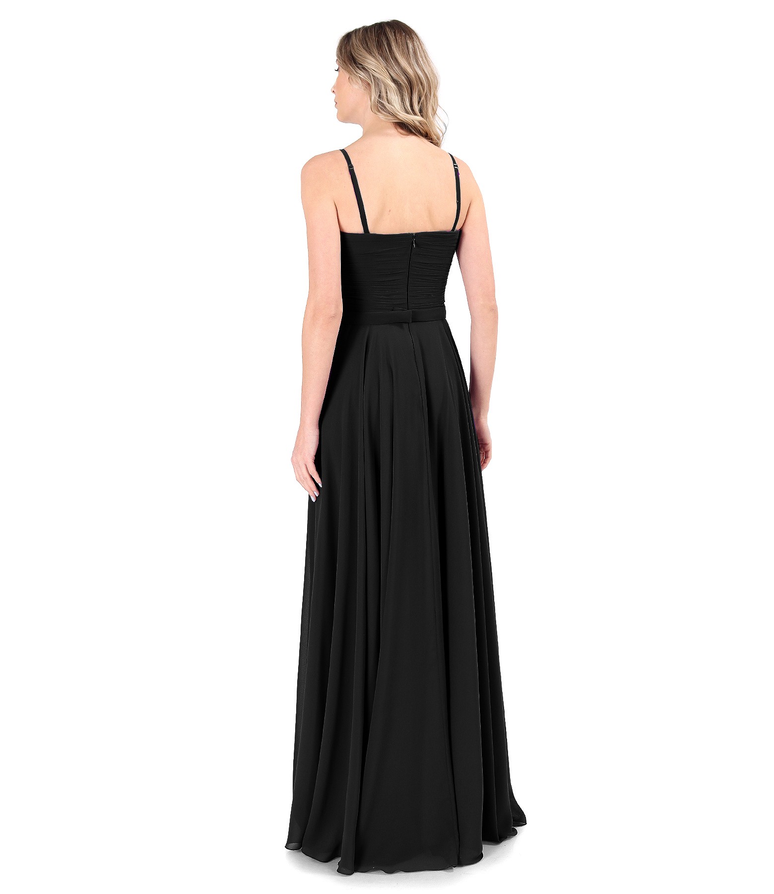 Rochie de seara lunga cu corset din voal uni (Negru), marimea