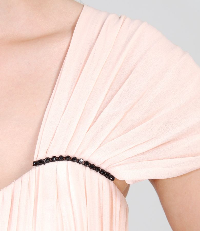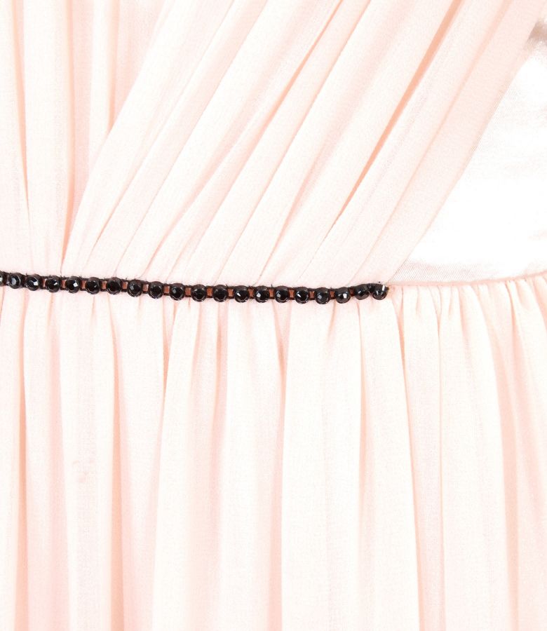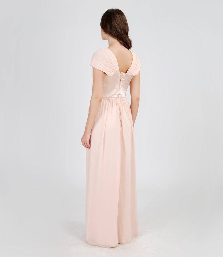 Rochie de seara lunga din voal si saten cu garnitura de cristale (Roz nud), marimea