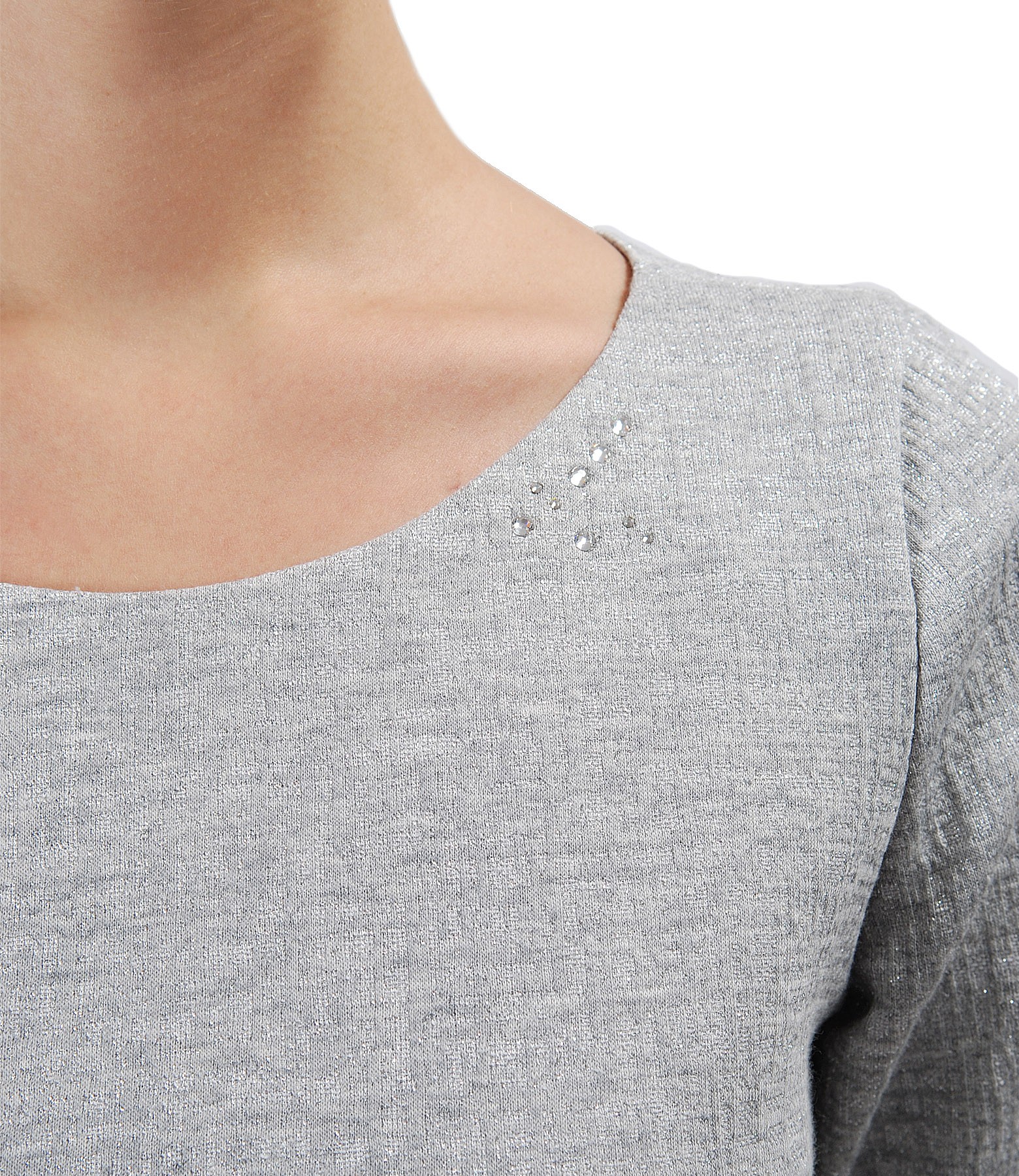 Rochie din bumbac cu fir de efect si aplicatie cristale (gri), marimea