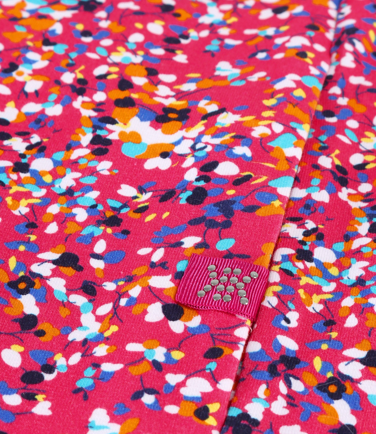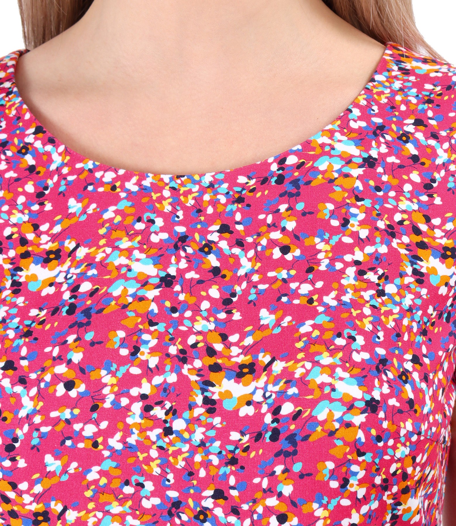 Rochie din bumbac elastic, imprimat cu motive florale, necaptusita, cu maneci scurte, decolteu rotund si buzunare laterale.