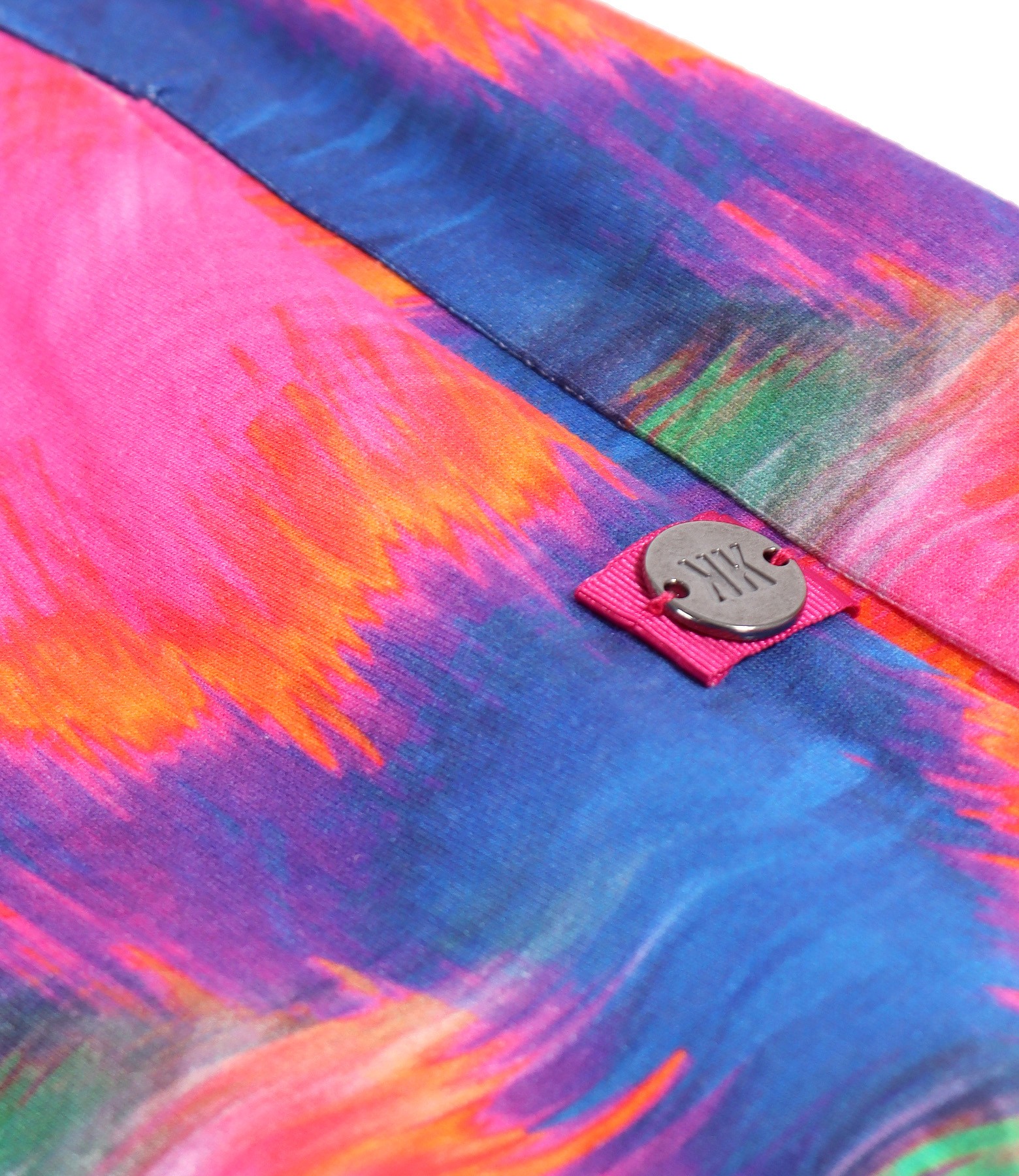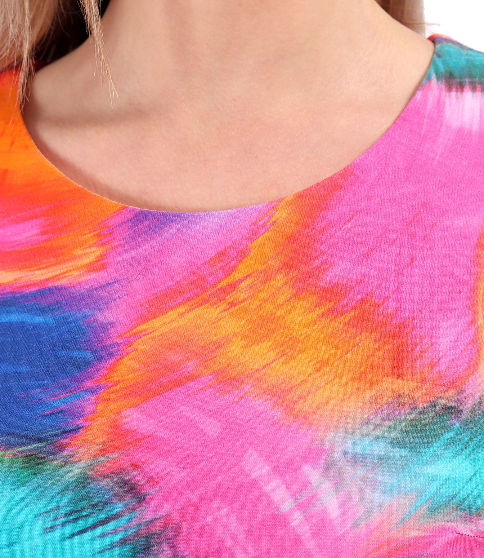 Rochie din bumbac elastic imprimat, necaptusita, cu maneci scurte, decolteu rotund si buzunare laterale.