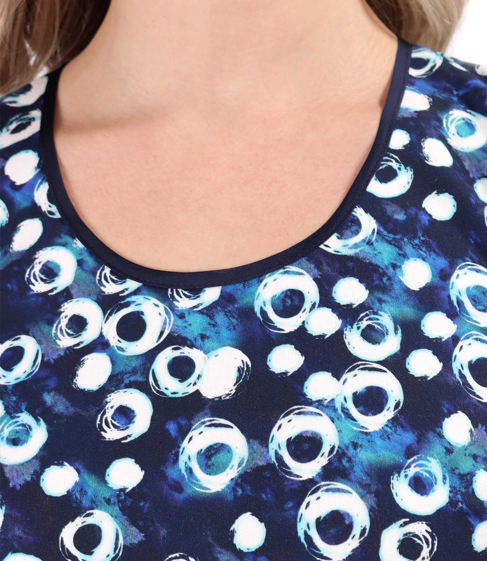 Rochie din bumbac elastic imprimat cu motive geometrice (Bleumarin), marimea
