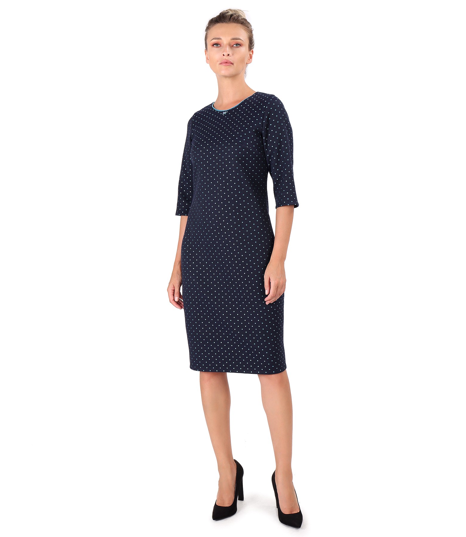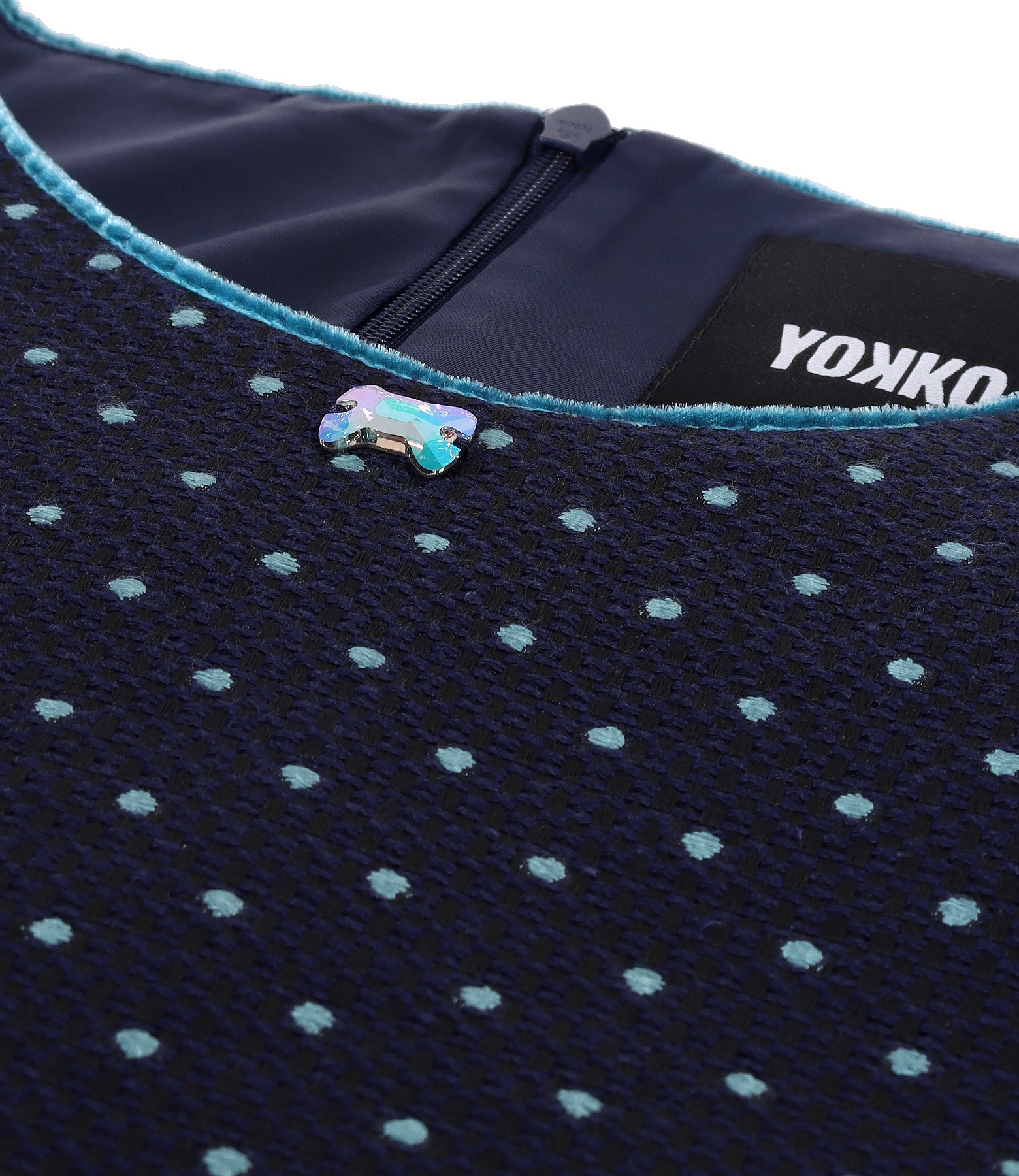 Rochie din bumbac gros brocat cu aplicatie de cristale (Bleumarin), marimea
