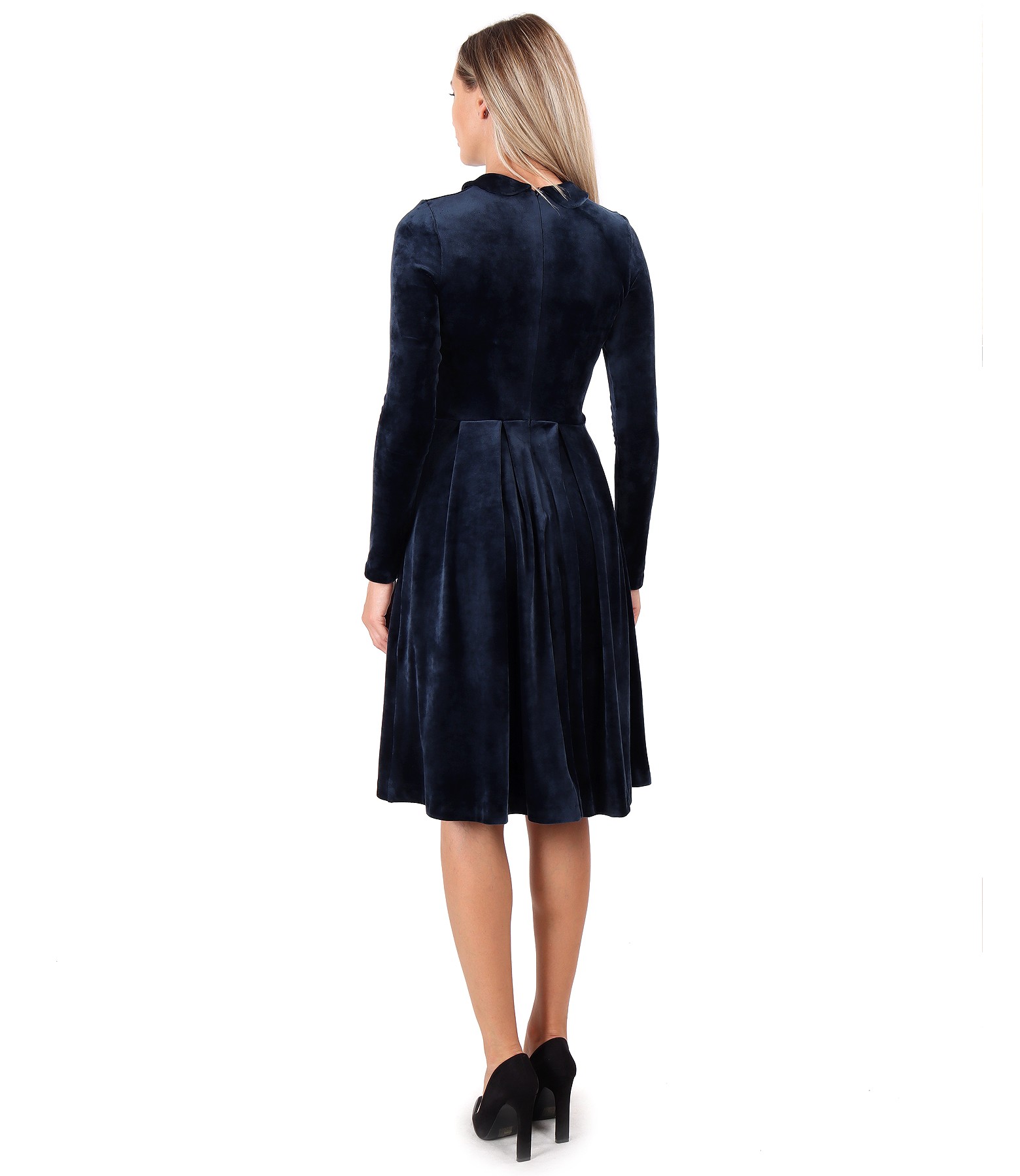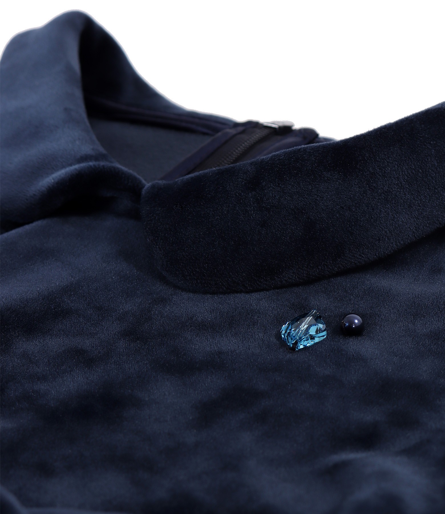 Rochie din catifea cu guler rotund si cordon detasabil (Bleumarin), marimea
