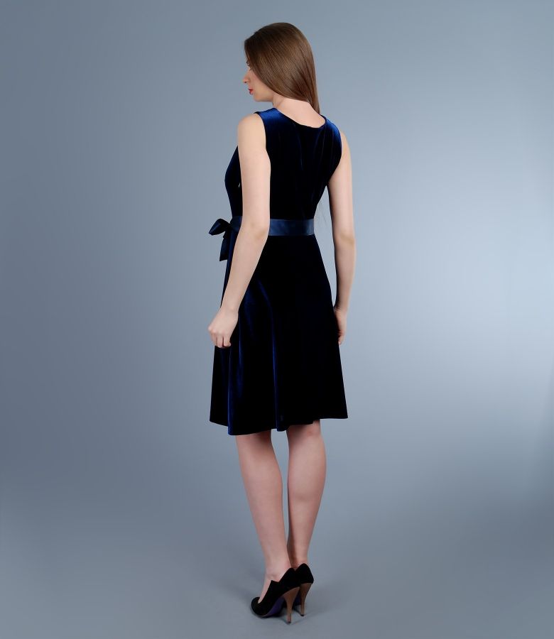 Rochie din catifea elastica cu cordon (Albastru), marimea