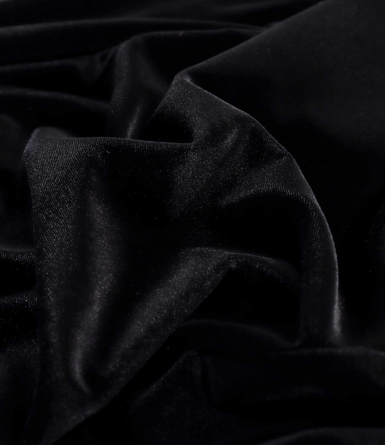 Rochie din catifea elastica cu guler ascutit si funda alba (Negru), marimea