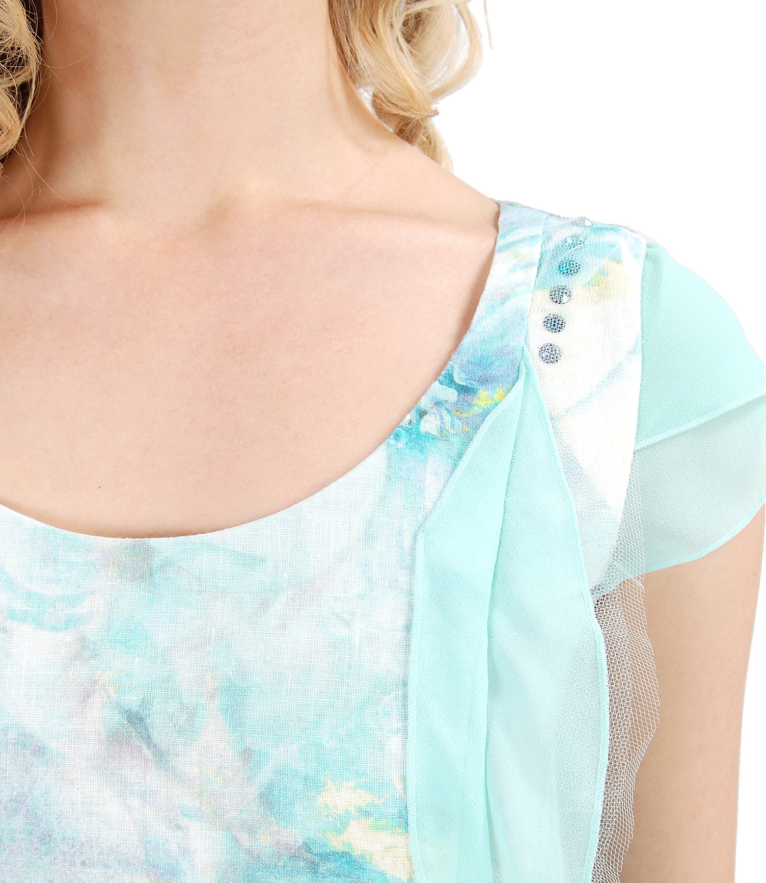 Rochie din in cu garnitura din voal si aplicatie de cristale (Imprimeu), marimea