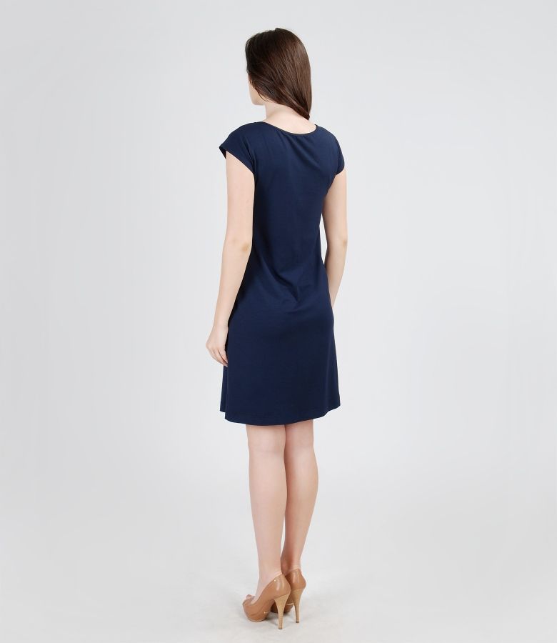 Rochie din jerse elastic cu jabou de voal (Bleumarin), marimea