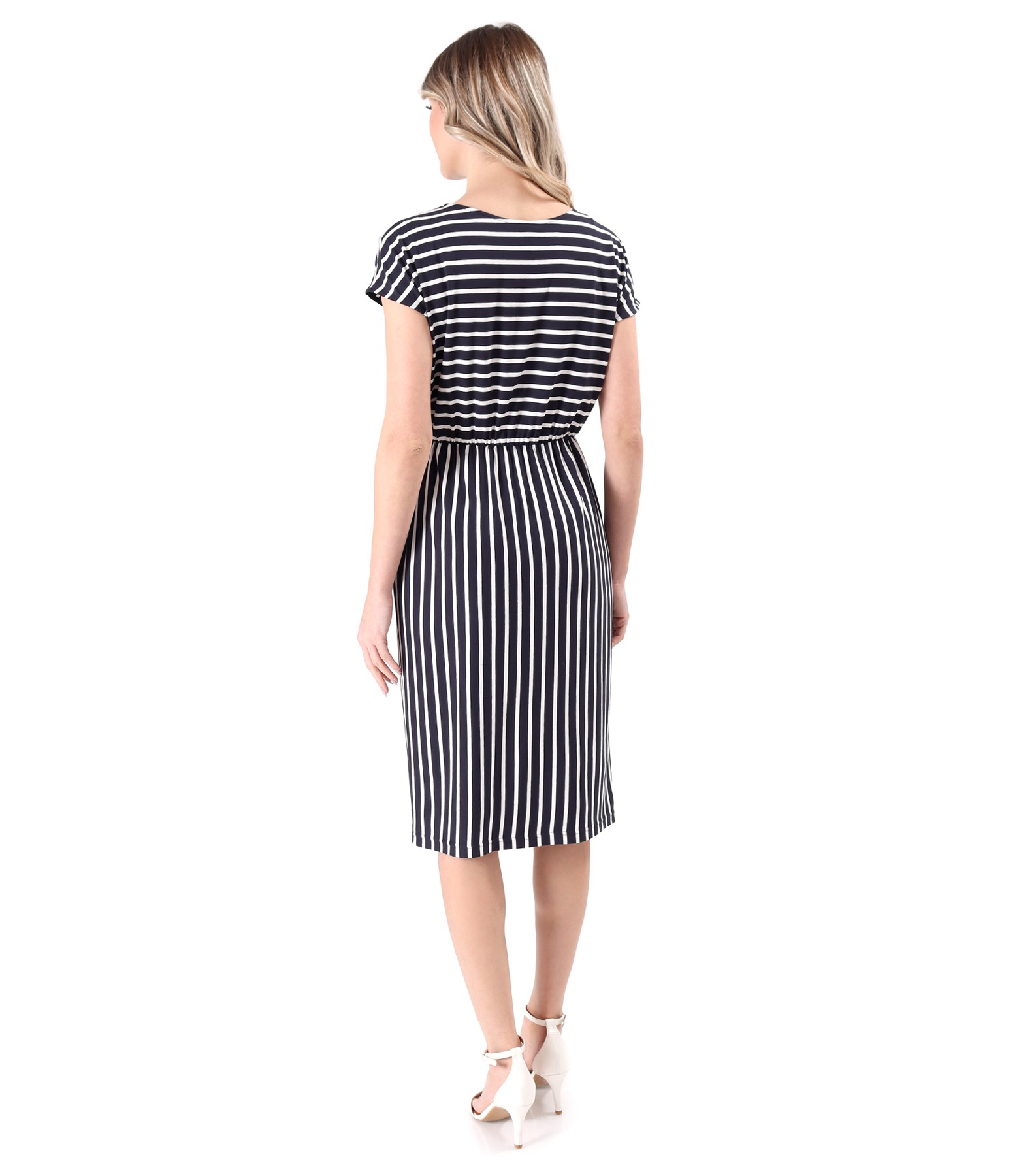 Rochie din jerse elastic de viscoza cu dungi (Bleumarin), marimea