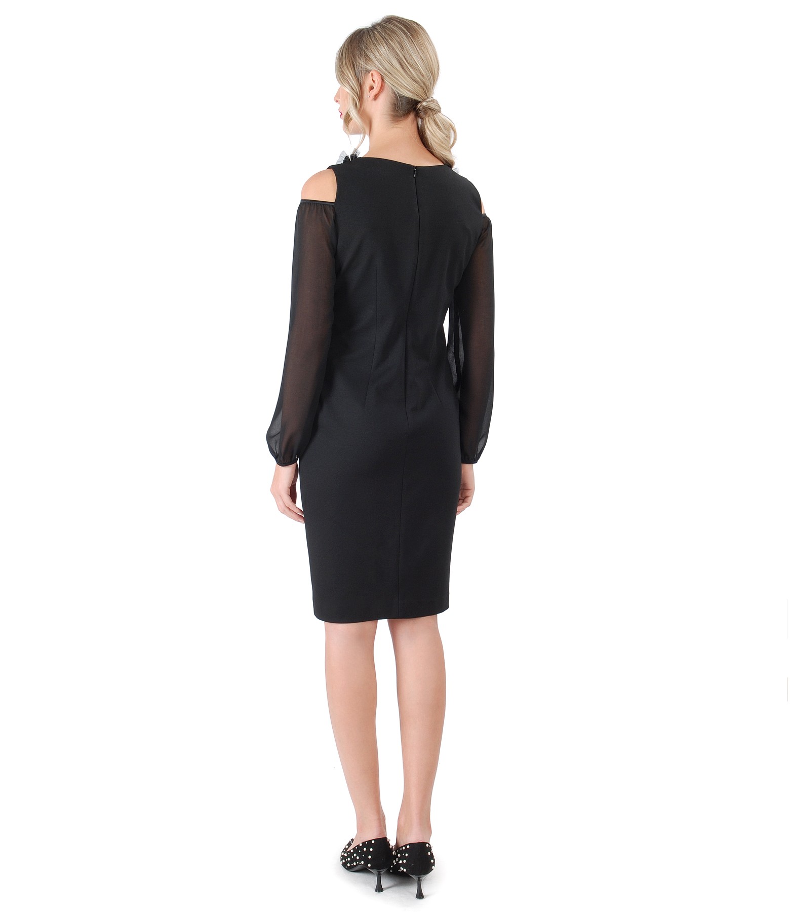 Rochie din jerse elastic gros cu maneci din voal (Negru), marimea