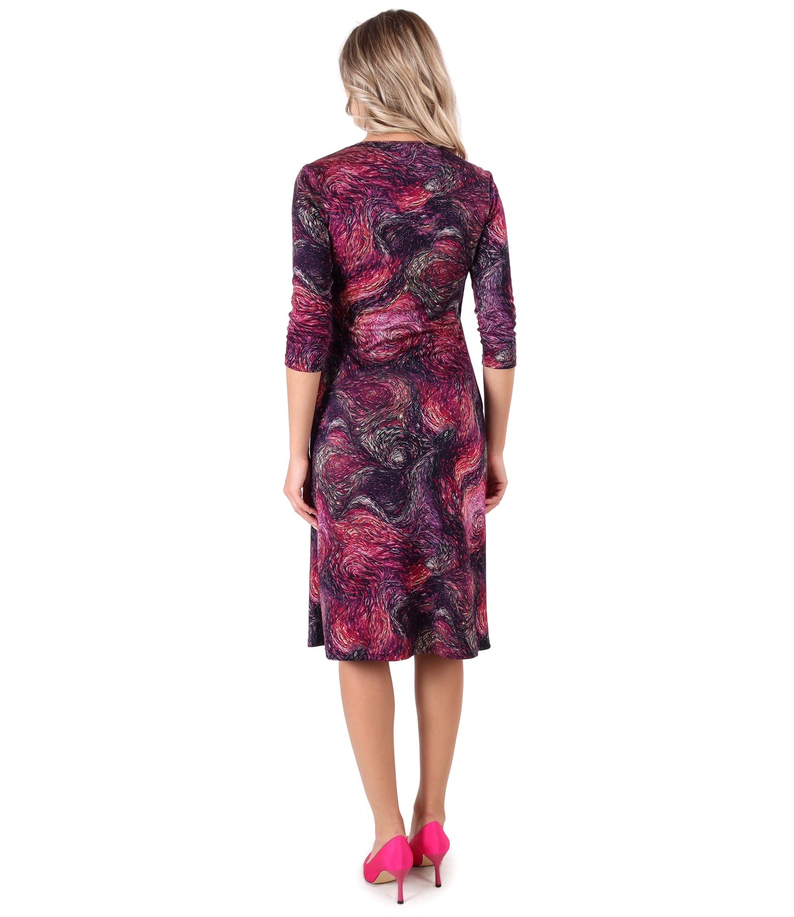 Rochie din jerse elastic gros imprimat (Ciclamen), marimea