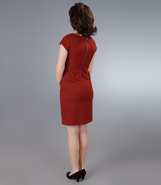 * rochie necaptusita din jerse elastic gros portocaliu cu decolteu rotund cu tighel contrast fata si spate