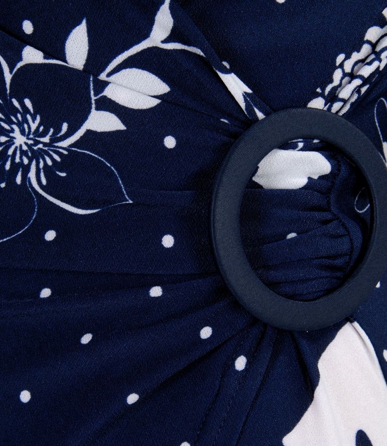 Rochie din jerse elastic imprimat cu catarama (Alb-Bleumarin), marimea