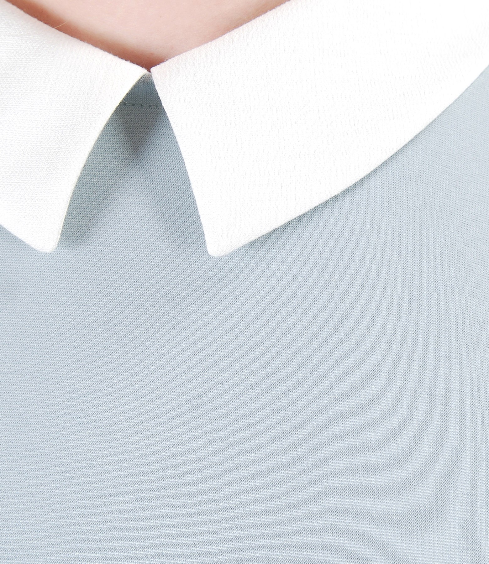 Rochie lejera din jerse elastic, cu guler, maneci scurte si buzunare laterale ascunse. Se inchide cu un nasture pe mijloc spate.