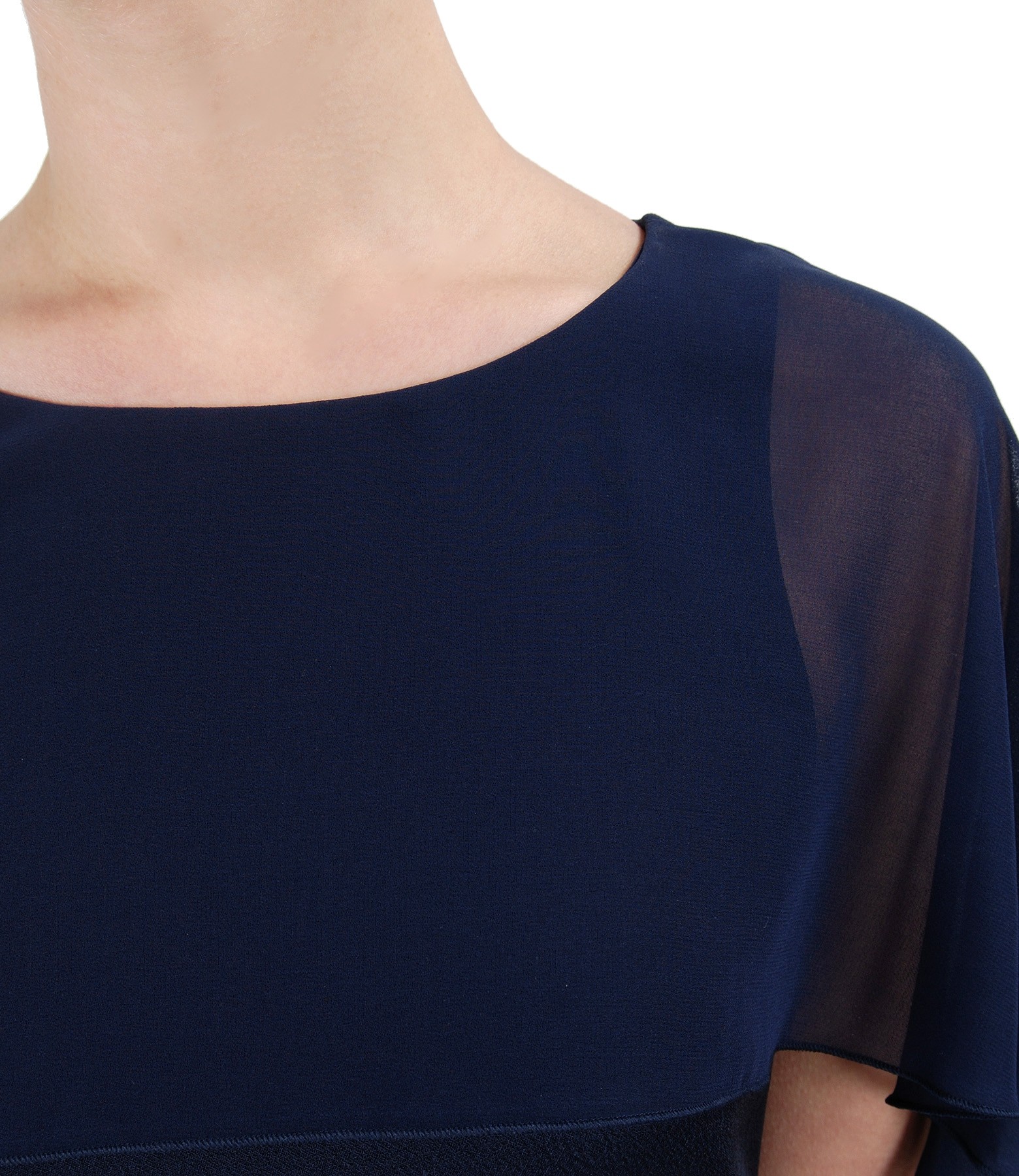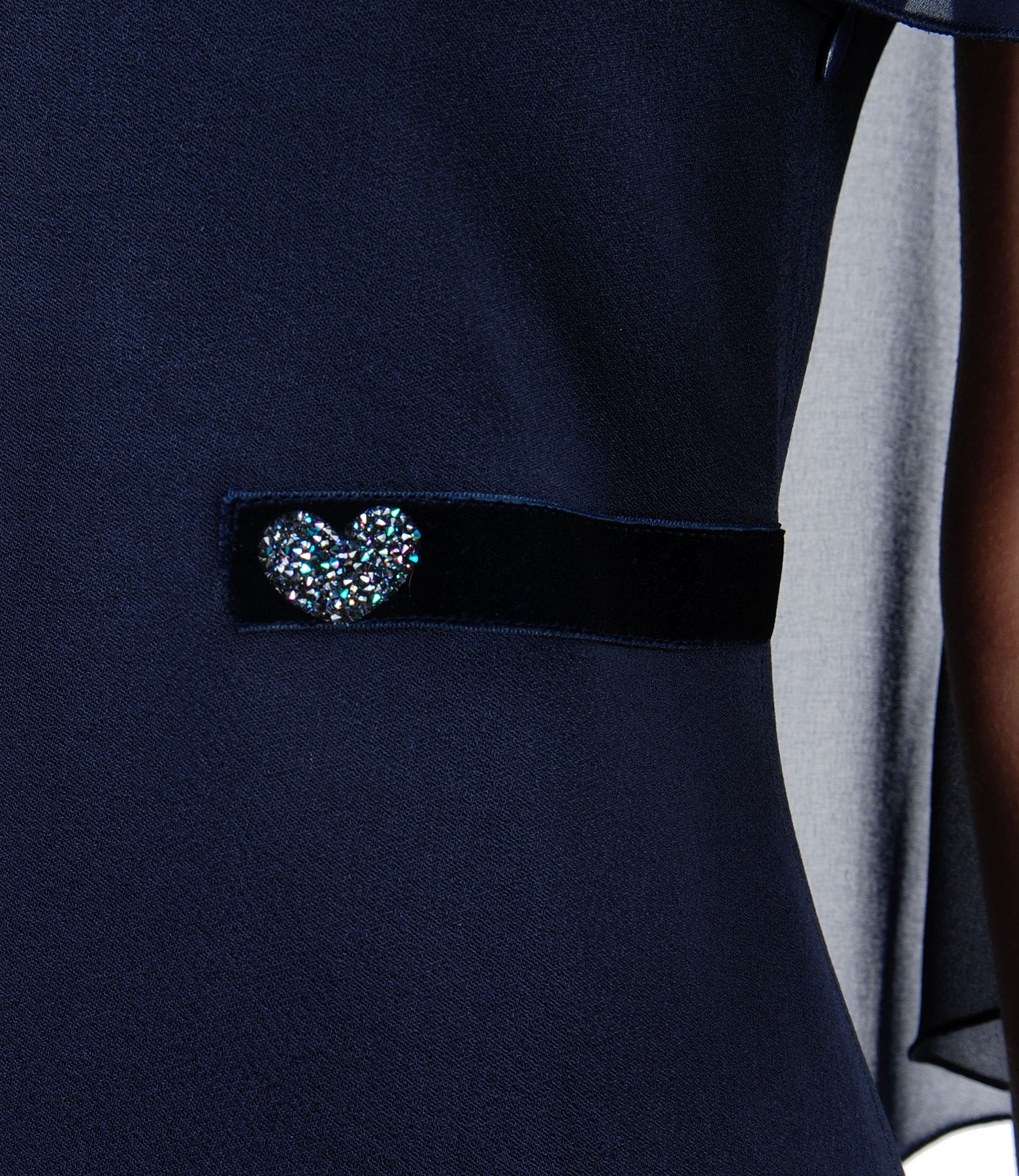 Rochie din viscoza cu pelerina din voal si aplicatie de cristale (Bleumarin), marimea