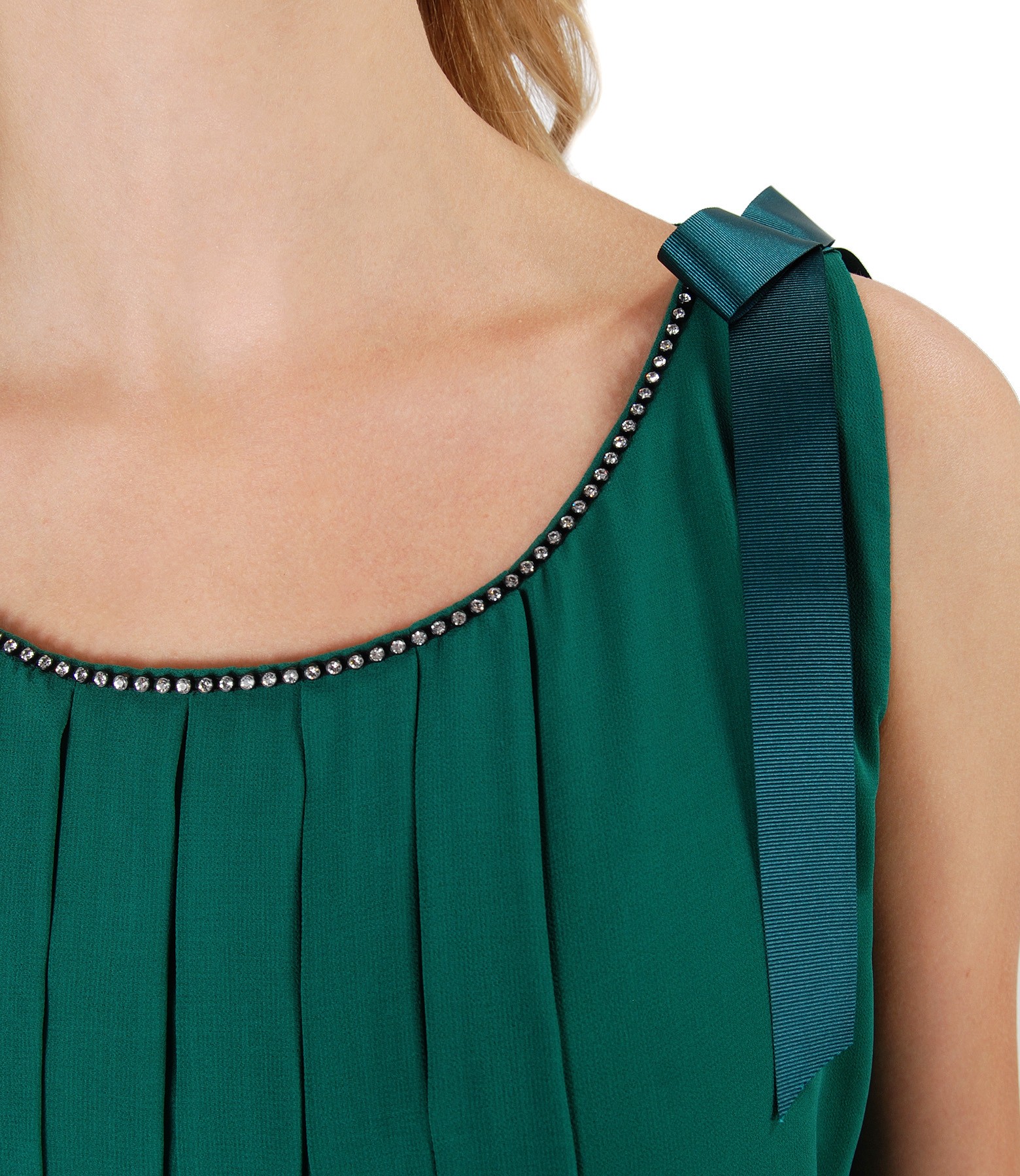 Rochie din voal cu falduri si cristale (Verde), marimea