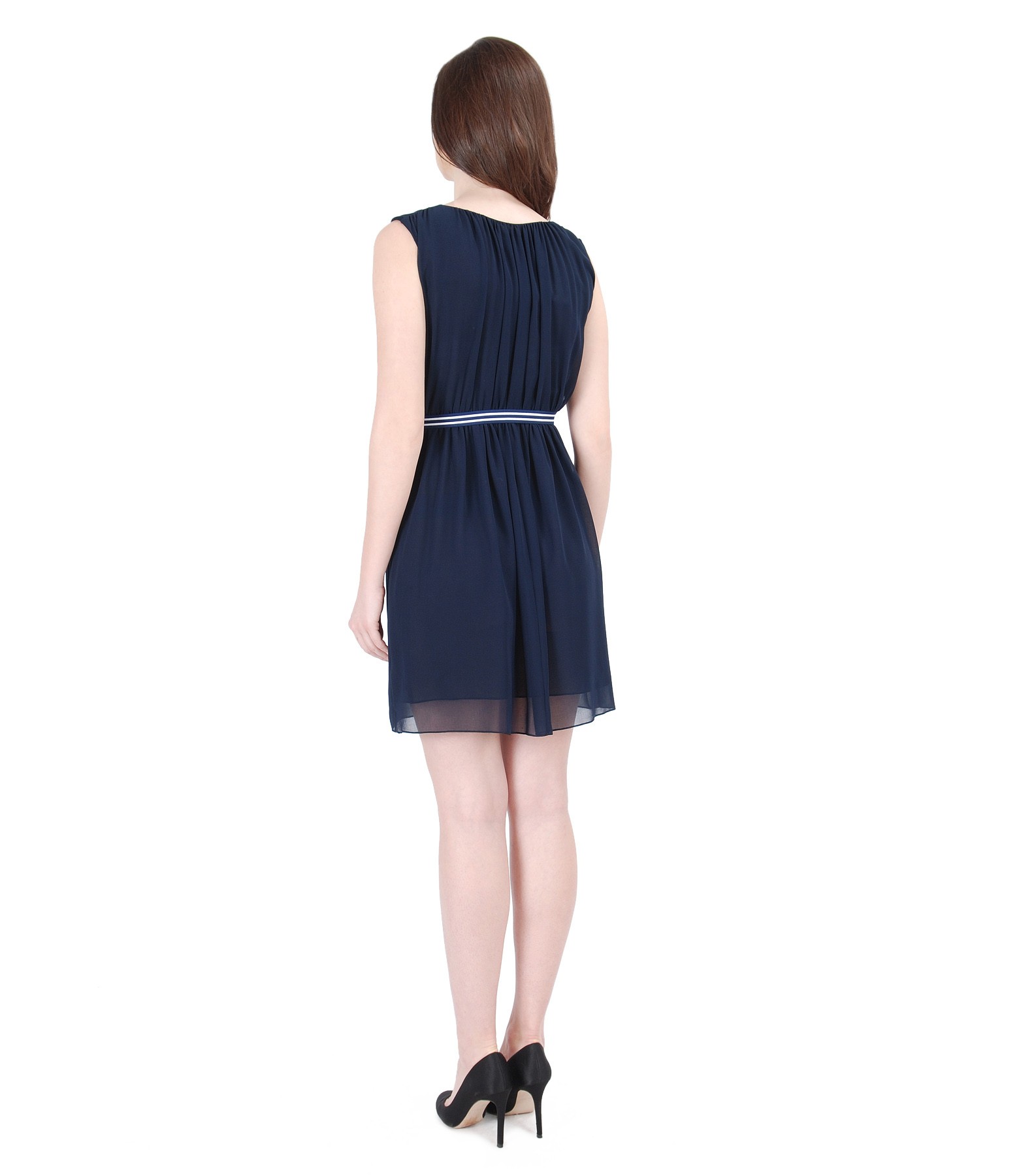 Rochie din voal cu falduri si cordon (Bleumarin), marimea