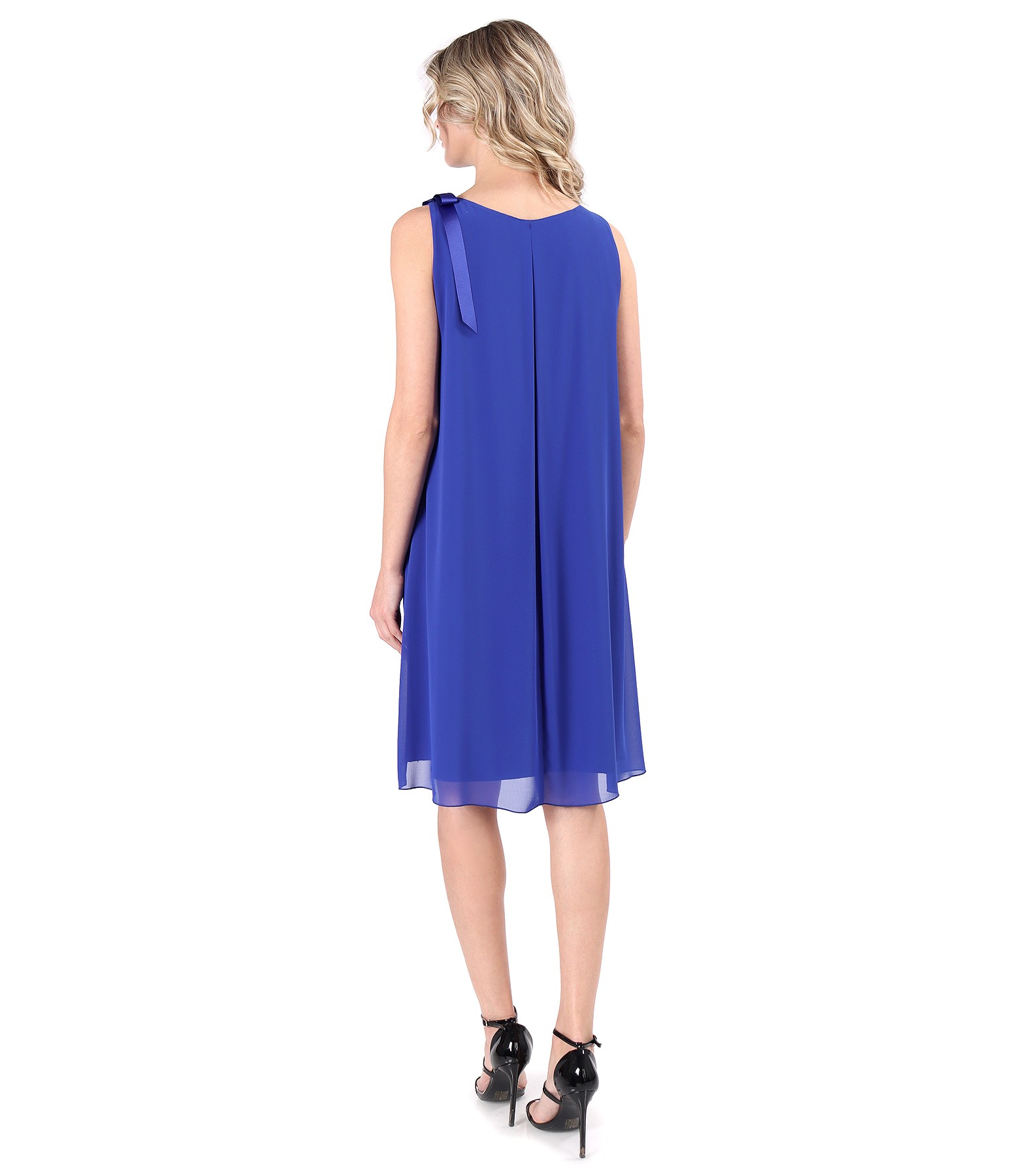 Rochie din voal cu falduri si cristale (Albastru Royal), marimea