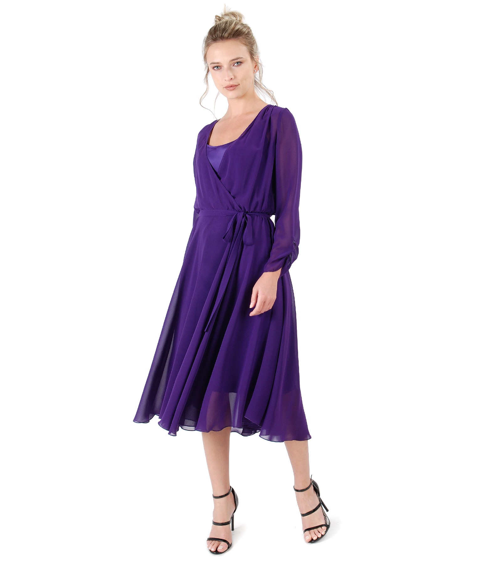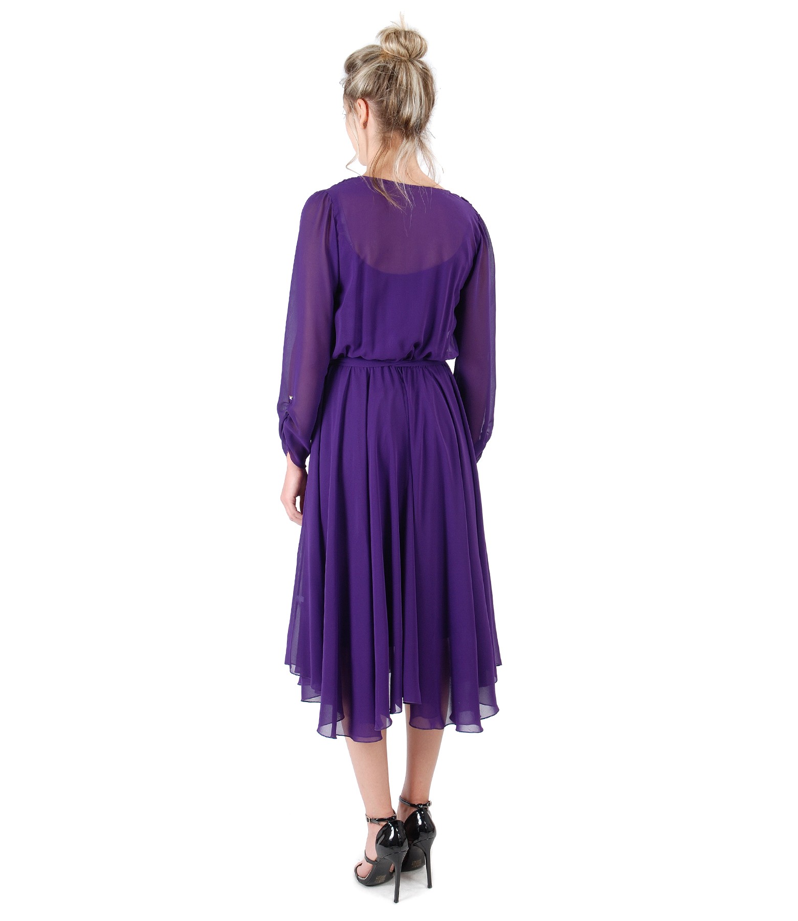 Rochie din voal cu furou din saten si aplicatie de cristale pe maneca (Mov), marimea