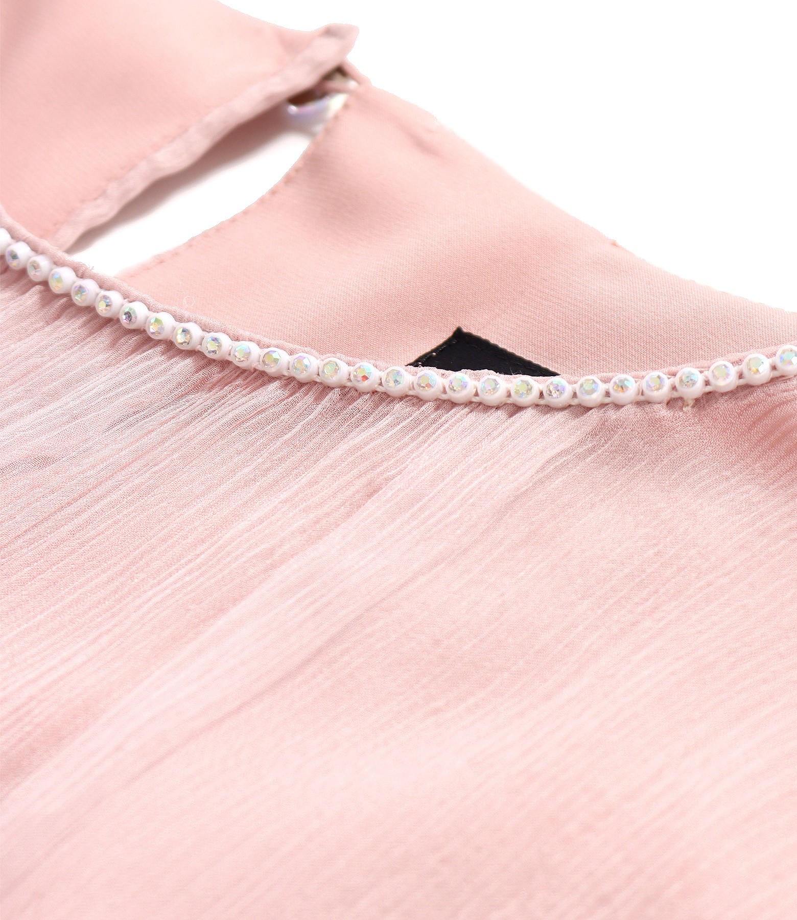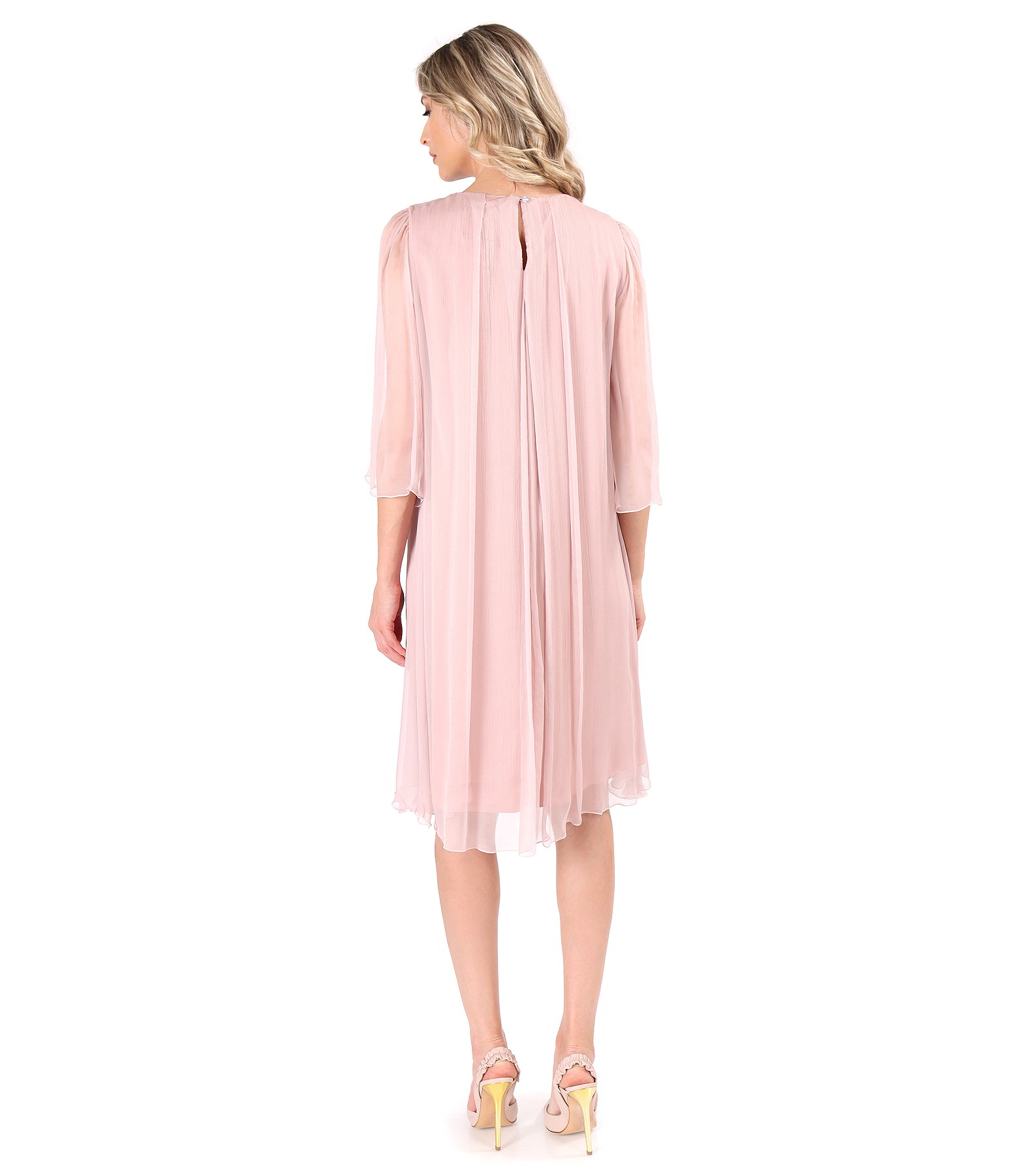 Rochie din voal de matase naturala cu cristale (Roz), marimea