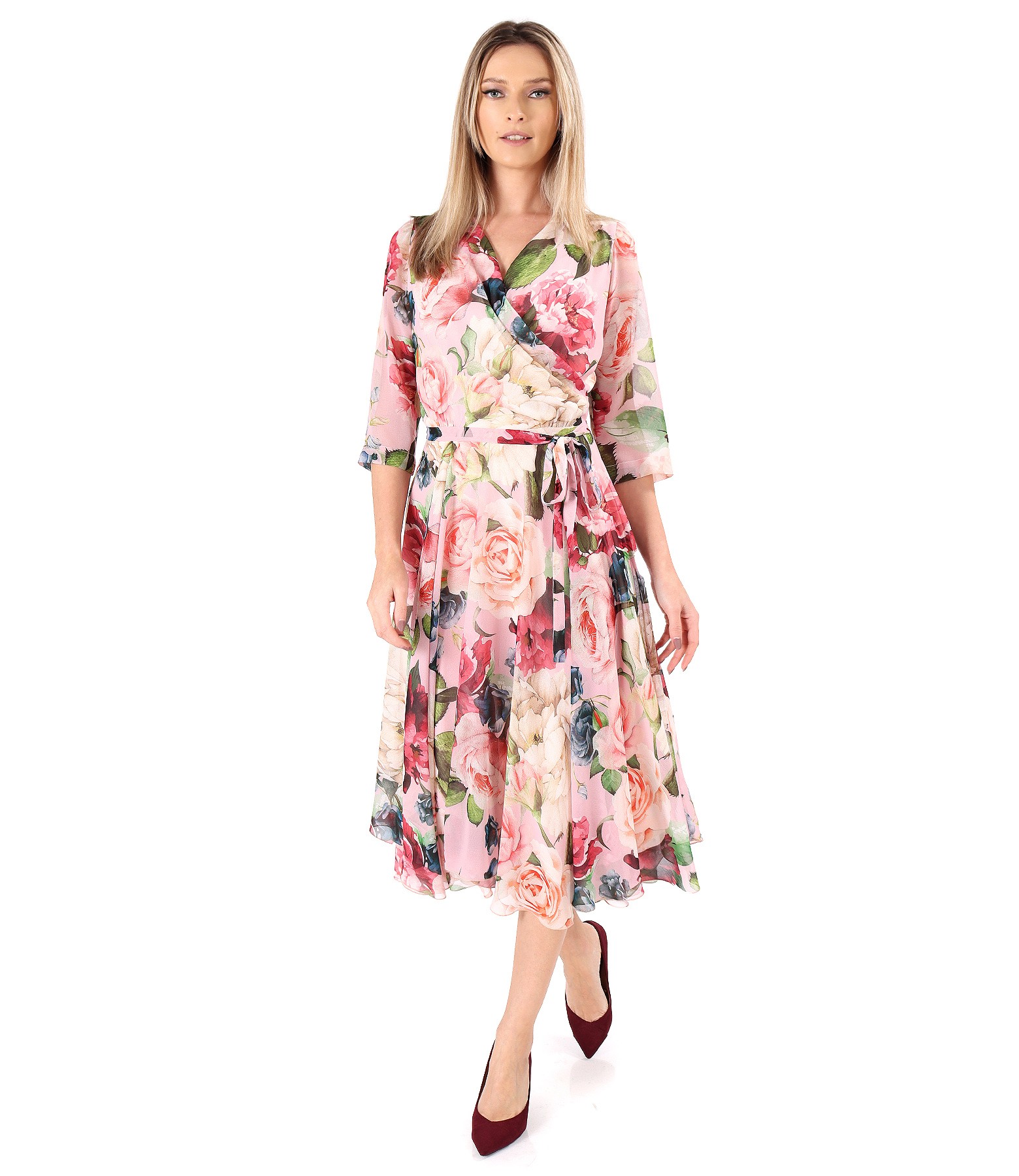 Rochie din voal fin imprimat cu motive florale (Roz), marimea