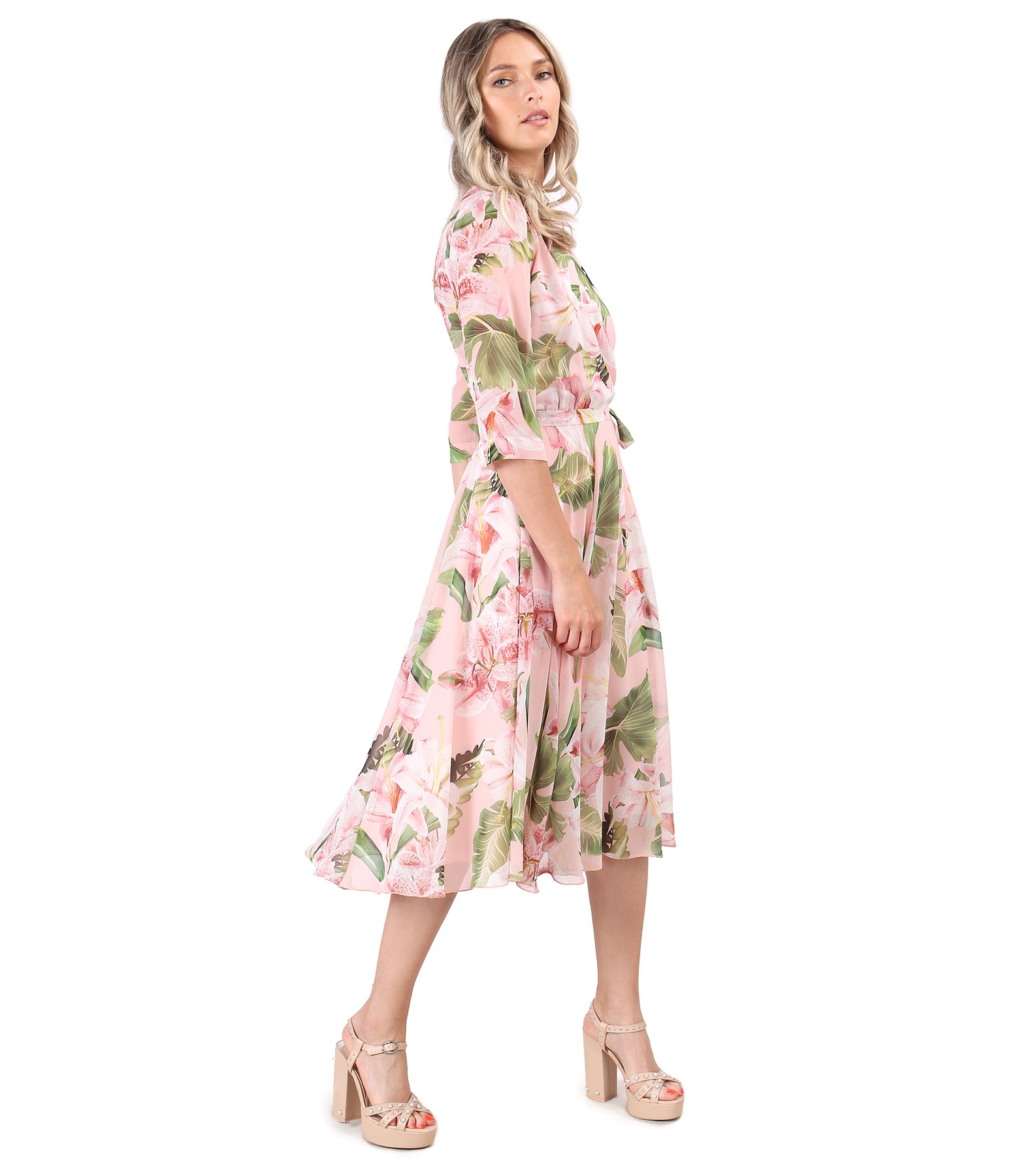 Rochie din voal imprimat cu flori supradimensionate (Roz), marimea
