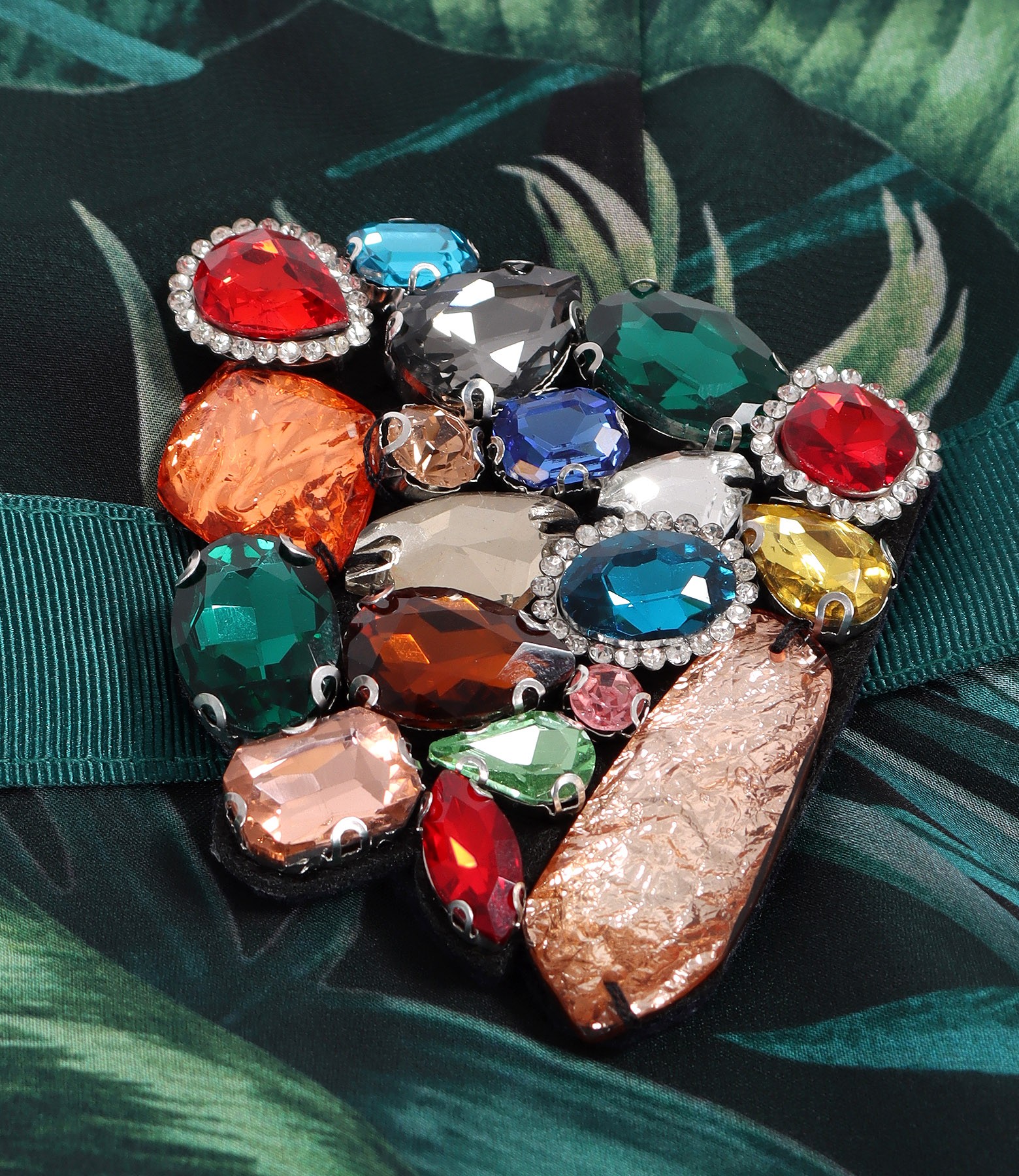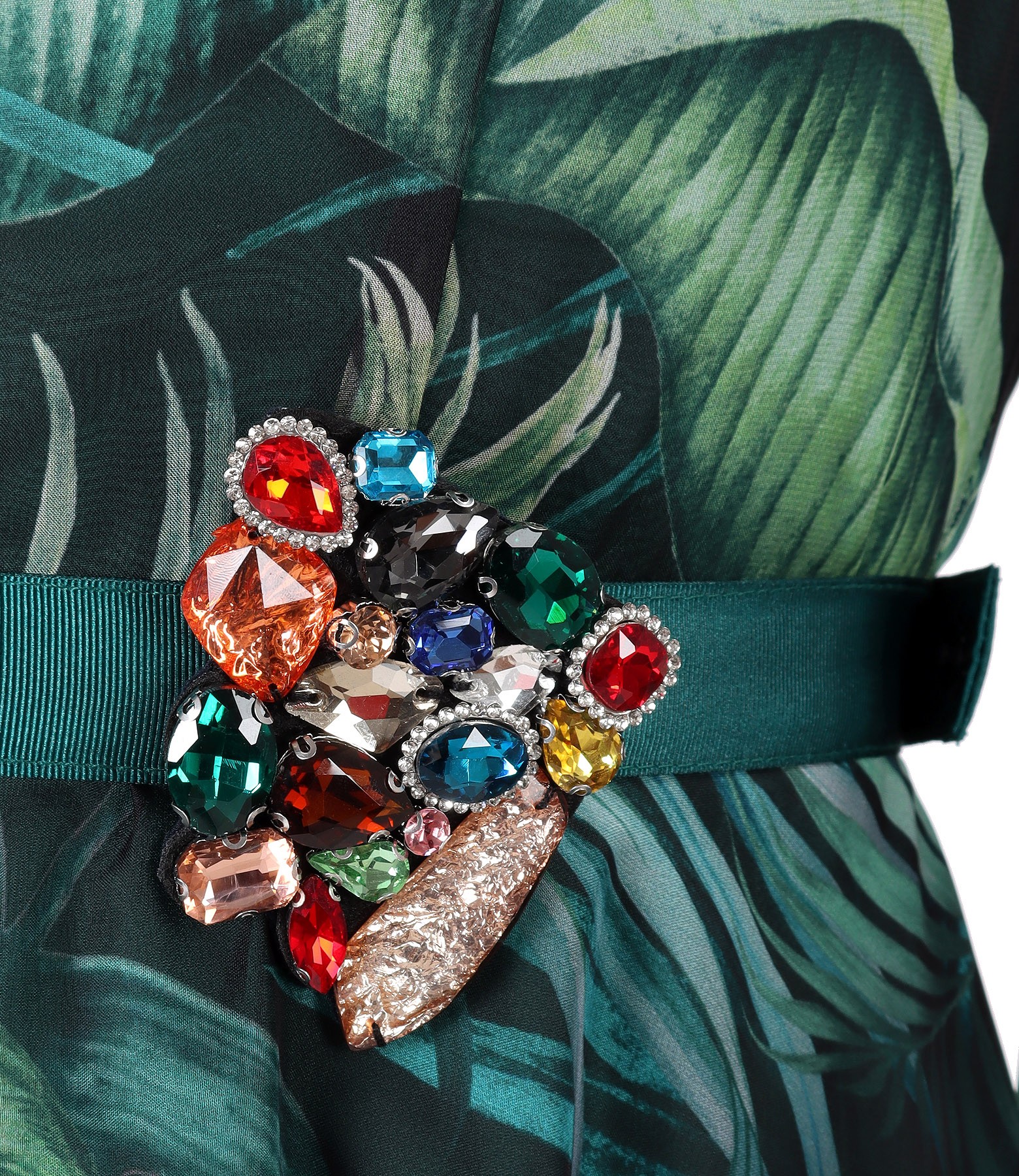 Rochie din voal imprimat cu motive florale si brosa in talie (Verde), marimea