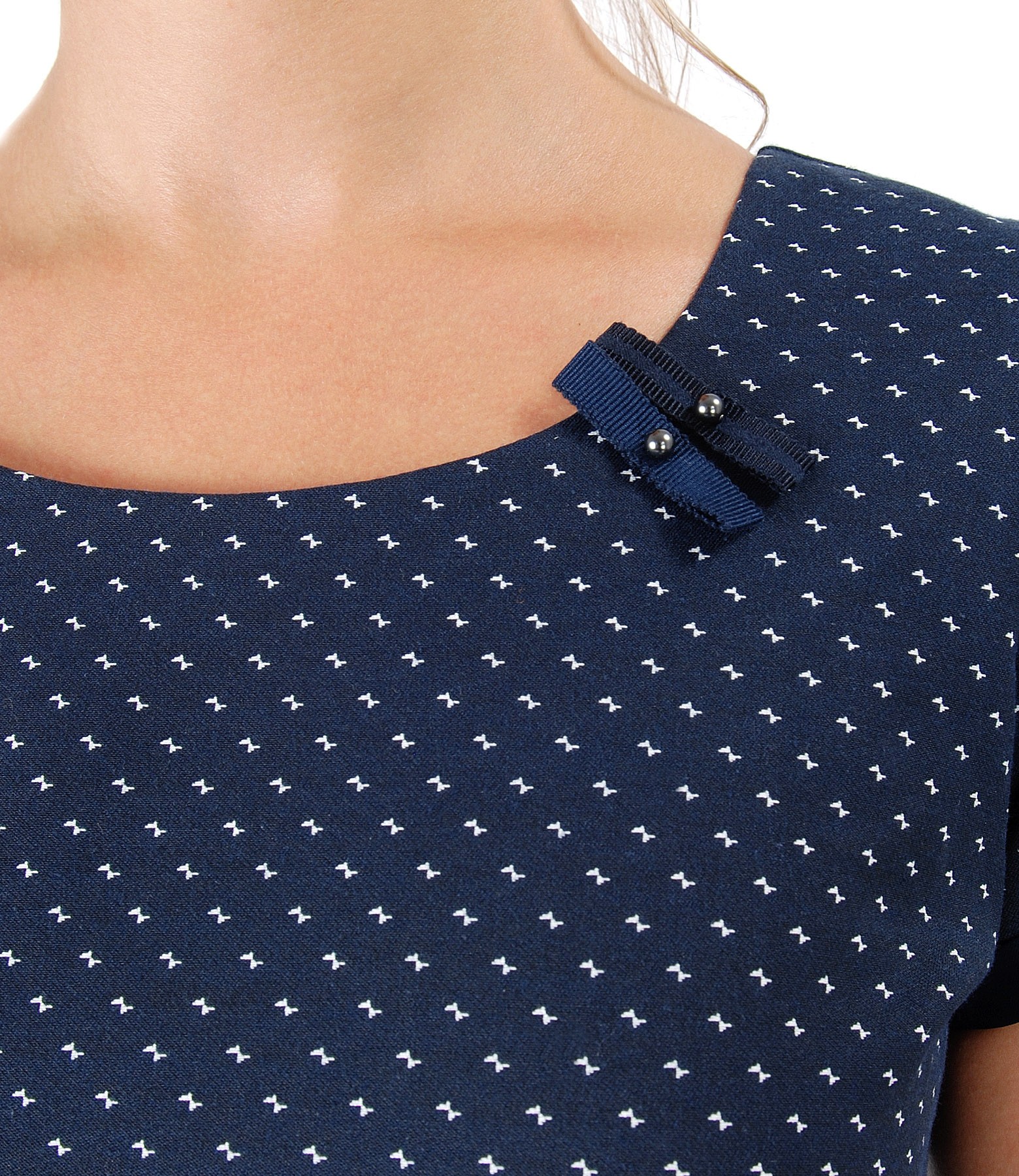Rochie eleganta cu bumbac elastic aplicatie de perle (Bleumarin), marimea