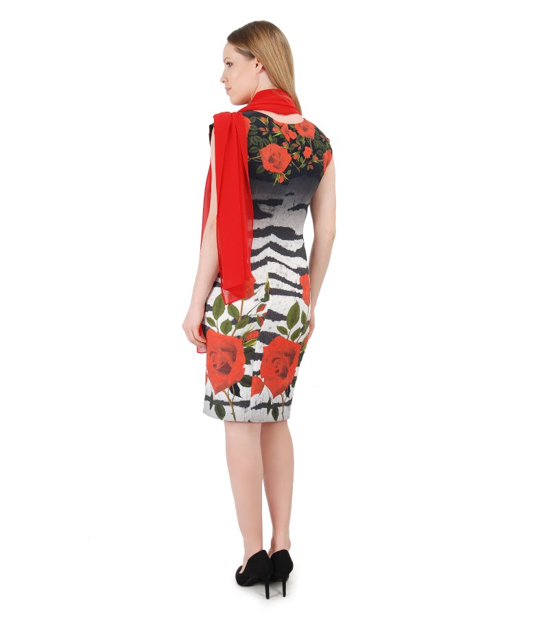 Rochie eleganta cu esarfa din voal uni